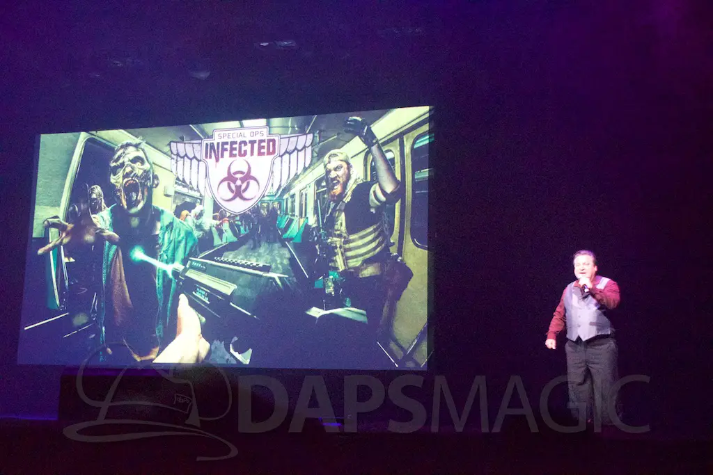 - The zombie shooting guided maze returns! You’ll be armed with special laser tag type guns that enable you to battle your way through the zombie-infected environment. The finale is redone with a “boss fight” type end. This is my absolute favorite and something that has enticed me to get the Scary Farm Season Pass to keep going through and improving my score! With a boss fight at the end, it is sure to be another big hit!