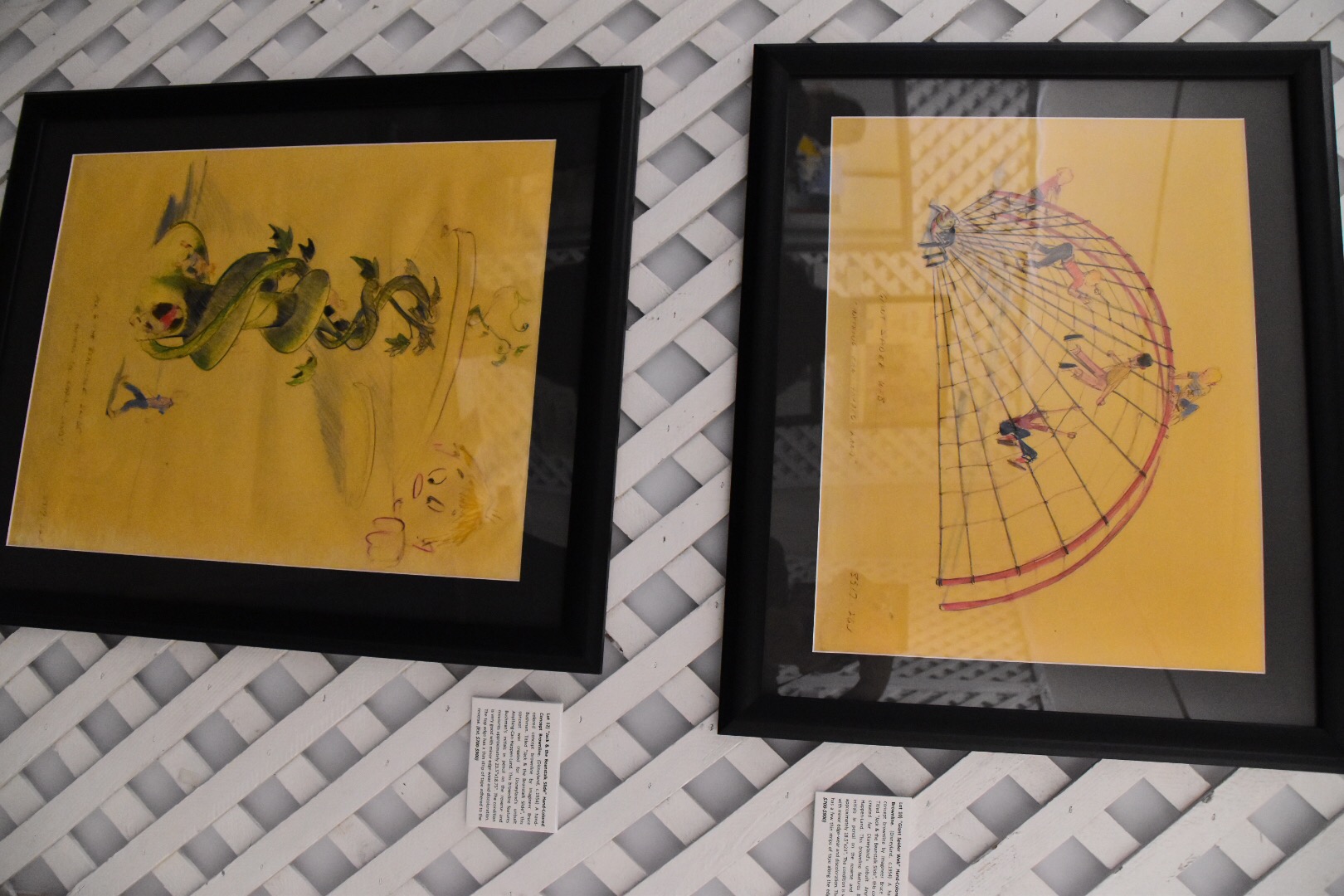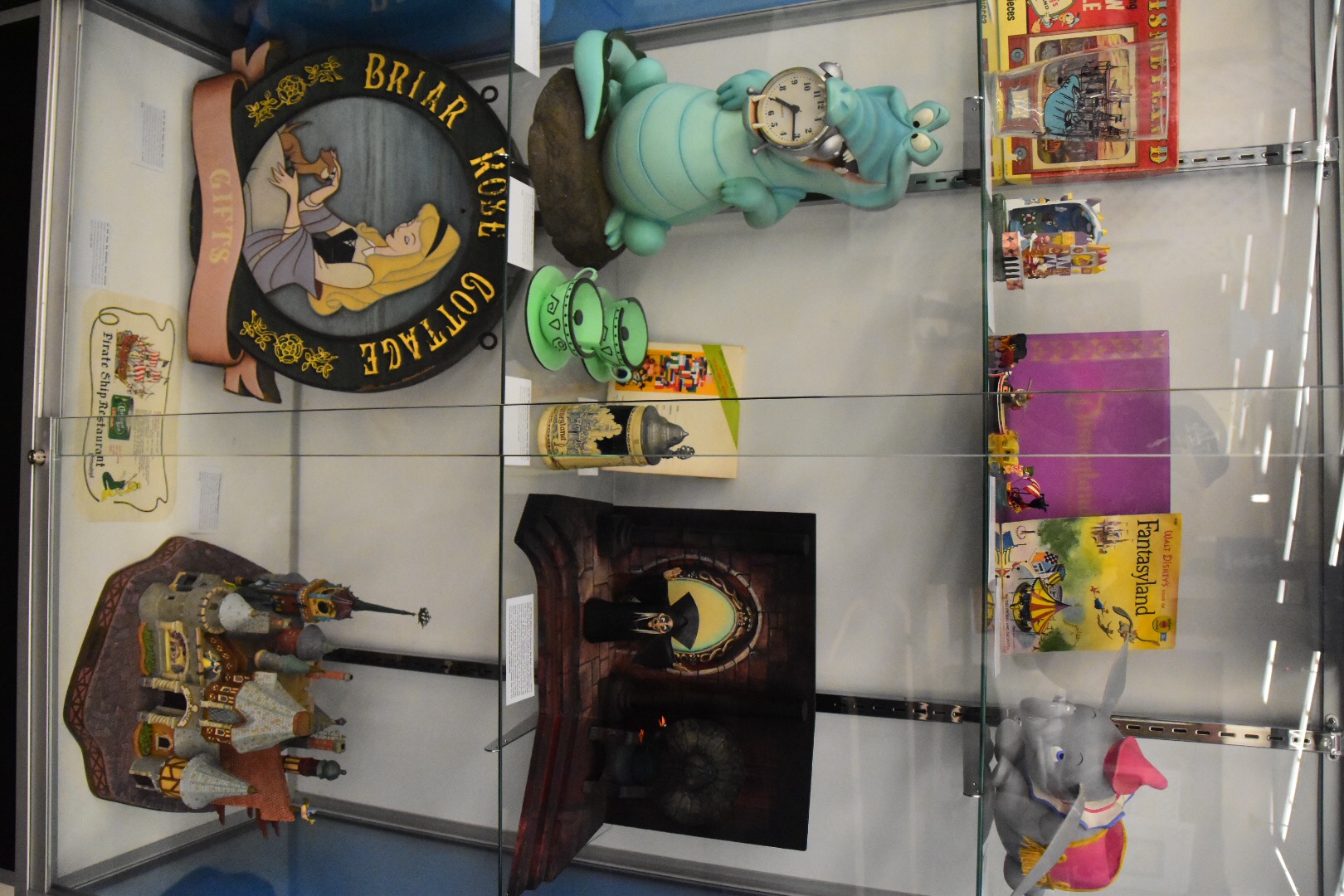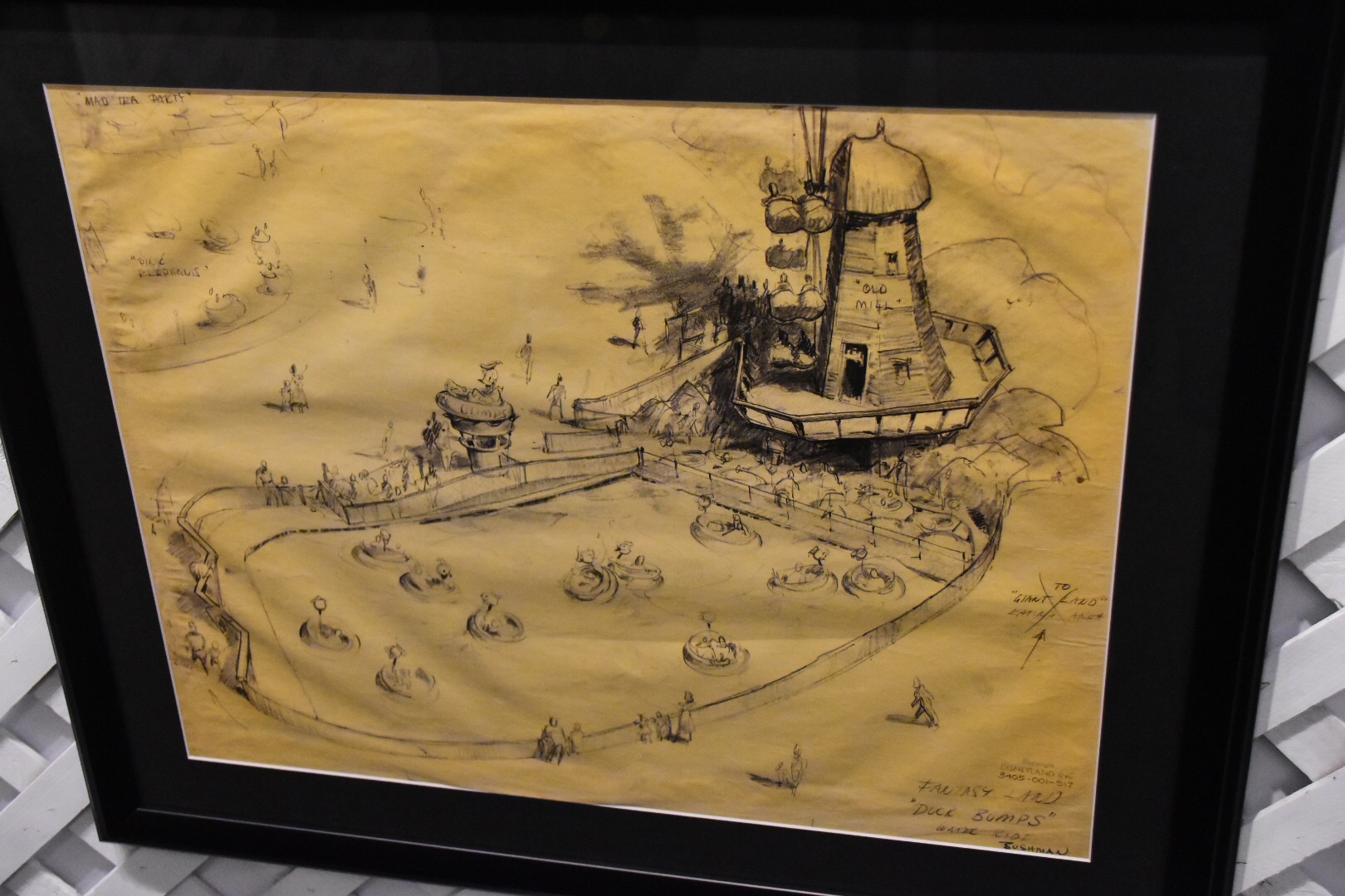 One of the striking elements of this gallery are the number of “brownlines” on display. These are concept art drawings with some notes of reference on how to actually build attractions, service vehicles, and decorations for Disneyland. The majority were never built pieces for the theme park, even predating the opening. I was amazed at what was thought up and wished for some of them to be built. For example, as simple as a beanstalk slide would be it had Willy the Giant peering over the top of a cloud. That would have been a breathtaking large scale slide for any kid to play on!
