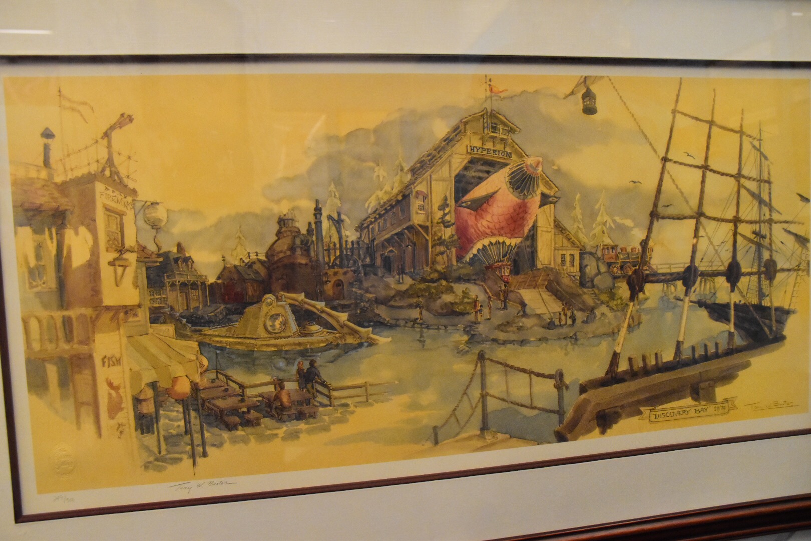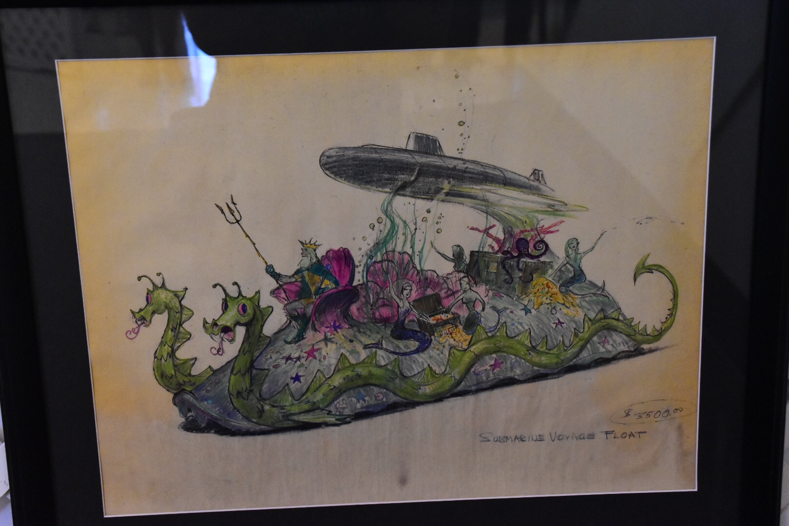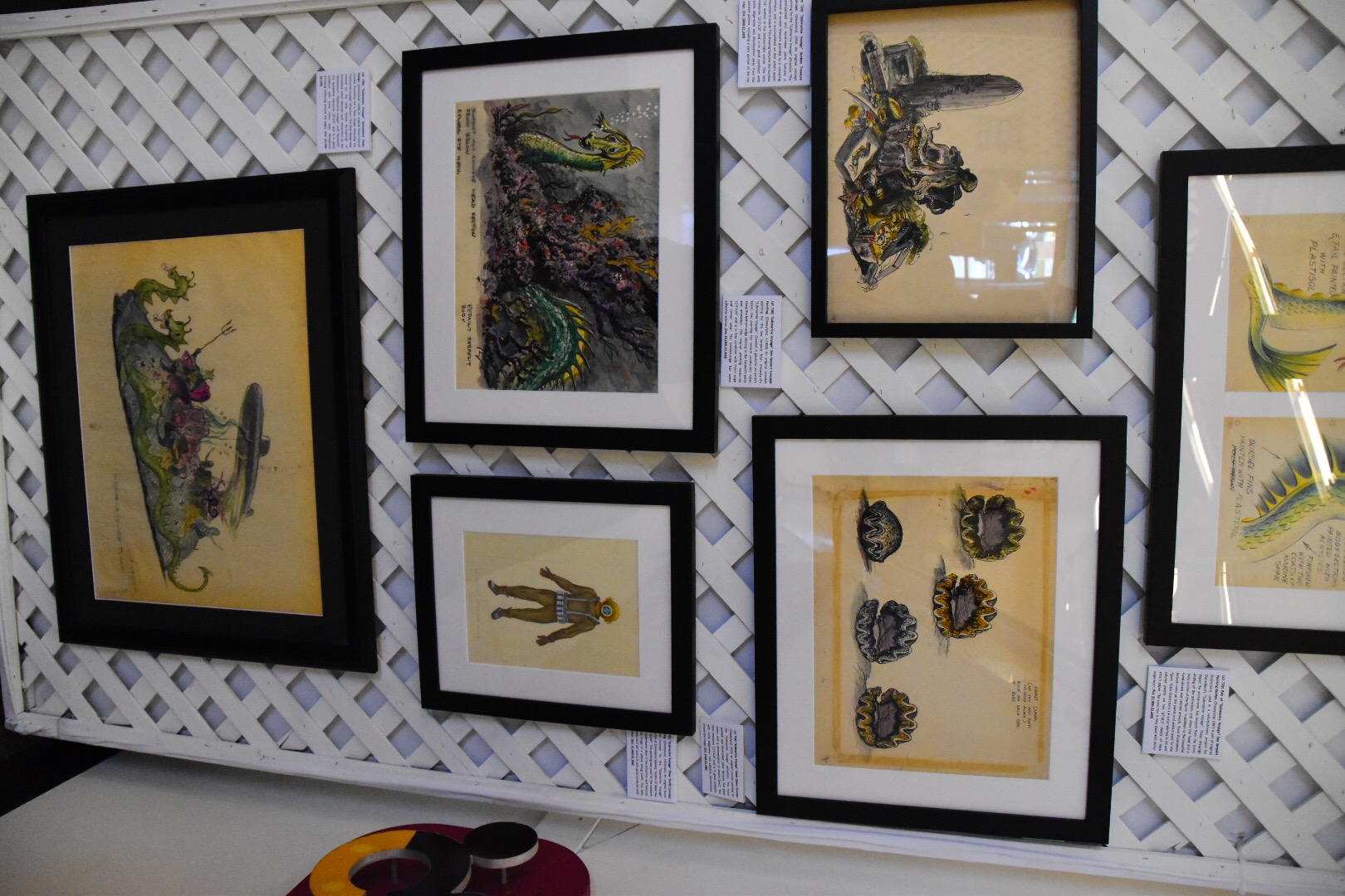 One of the striking elements of this gallery are the number of “brownlines” on display. These are concept art drawings with some notes of reference on how to actually build attractions, service vehicles, and decorations for Disneyland. The majority were never built pieces for the theme park, even predating the opening. I was amazed at what was thought up and wished for some of them to be built. For example, as simple as a beanstalk slide would be it had Willy the Giant peering over the top of a cloud. That would have been a breathtaking large scale slide for any kid to play on!