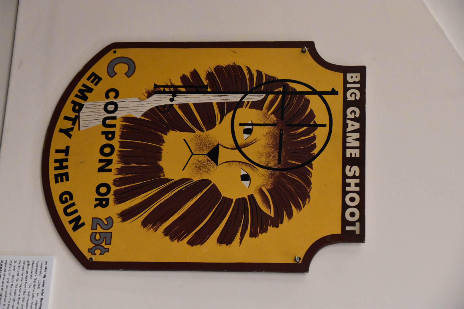 It was a bit funny for me to peruse auction items considered to be part of the history, but my fairly recent past. Among such items were old parking lot signs for a lot now taken up by Disney California Adventure. I remember being able to walk from the car straight to the entrance gates, and having to remember where we parked by character name.