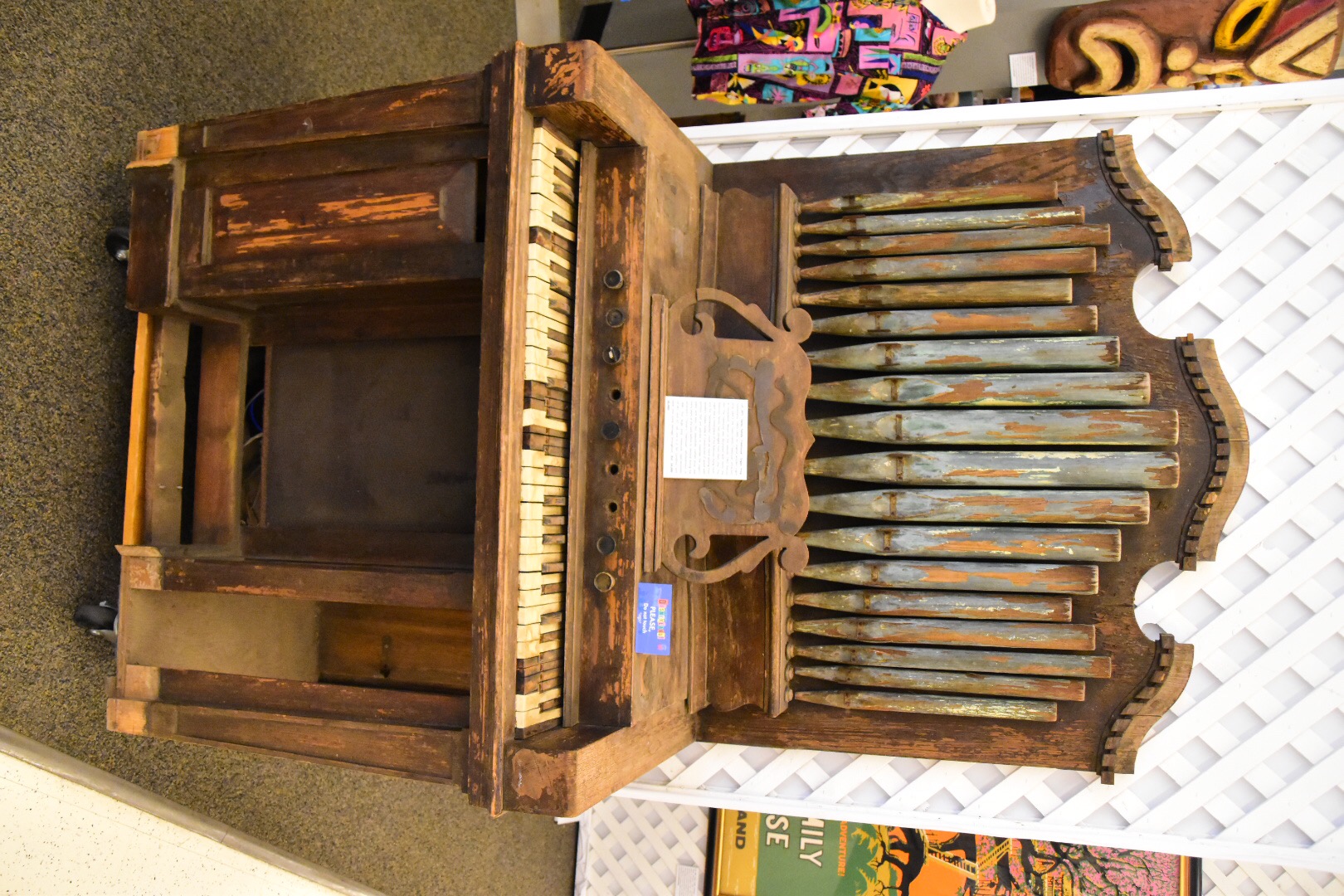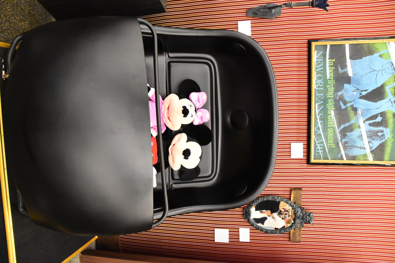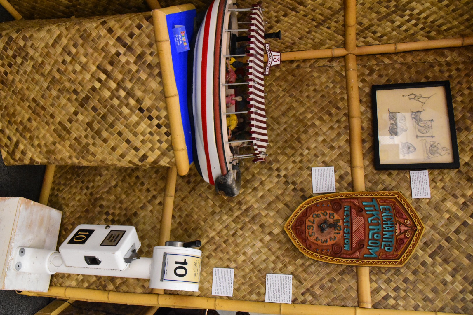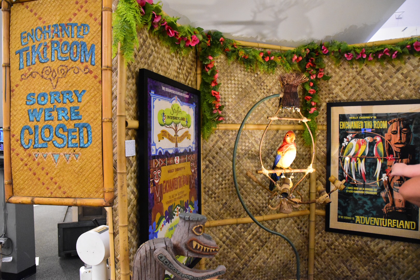 Something else fascinating about the exhibit is how close you can get to so many parts of the park that were inaccessible in this way before. There’s the organ from the Swiss Family Treehouse that sat behind a fence in a room at the top. But, you can breathe on it now. There’s José from the Tiki Room, working and “talking” but at eye level! Small world dolls gyrate without music, but face to face instead of lengths across.