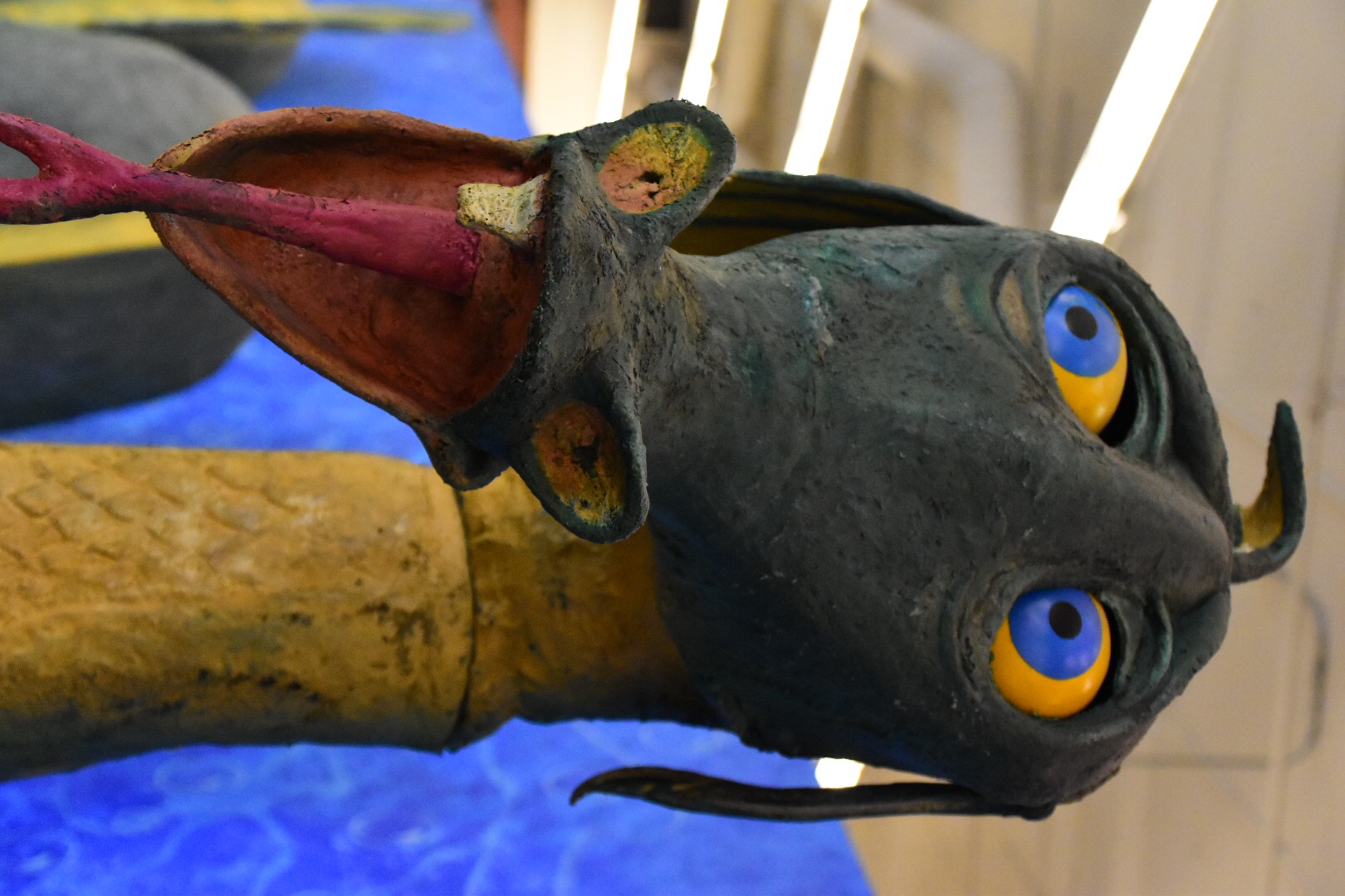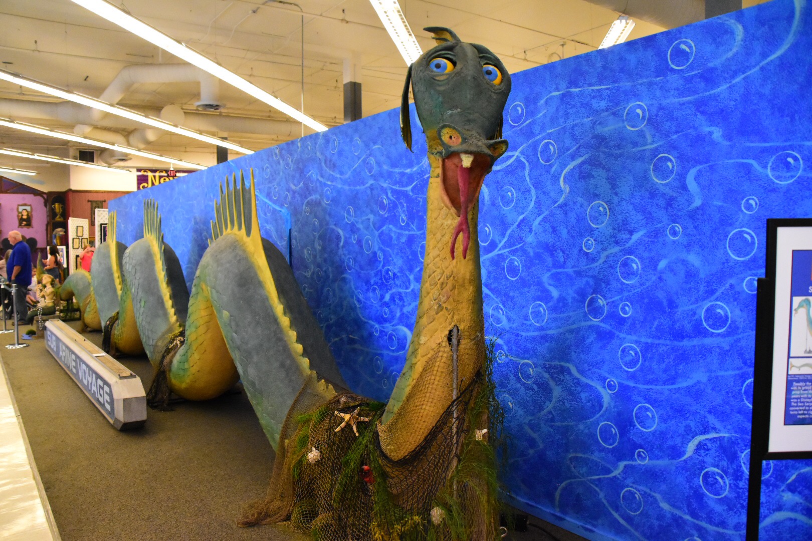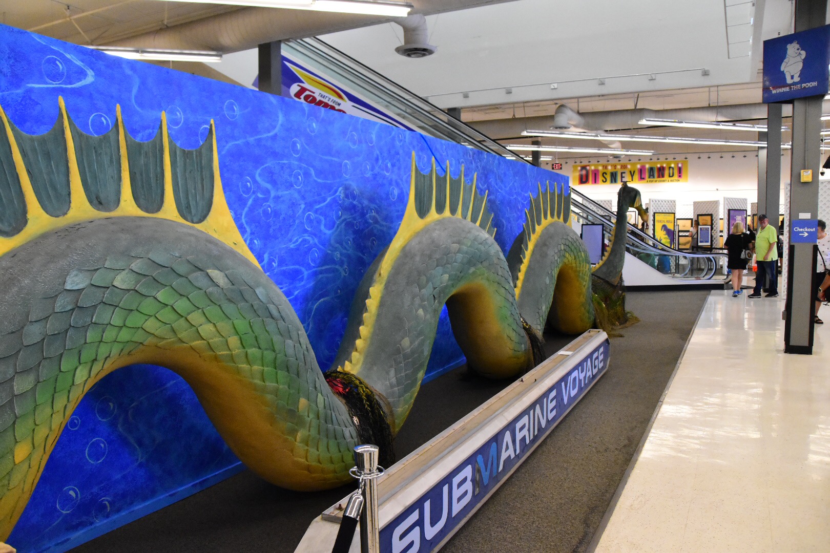 At the end of the whole exhibit is the infamous sea serpent from the Submarine Voyage. In the water and through a small hole in the vessel it did seem big. But, this is huge! It could easily take up a large room in a house.