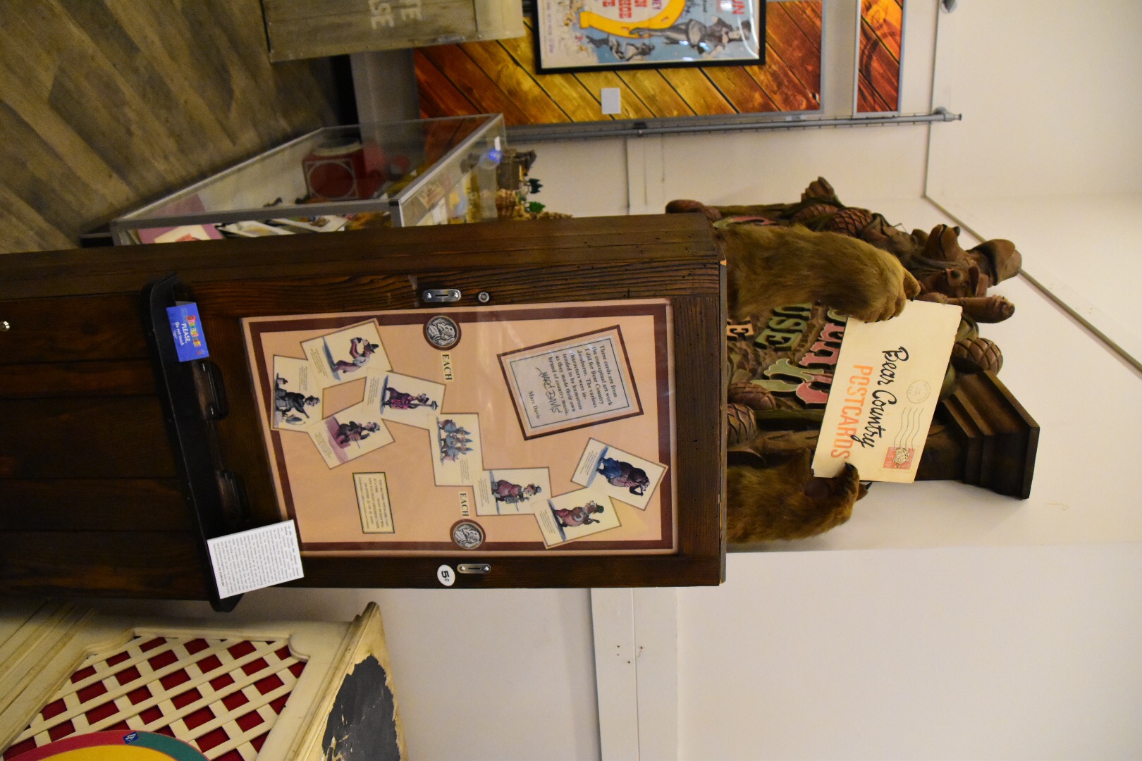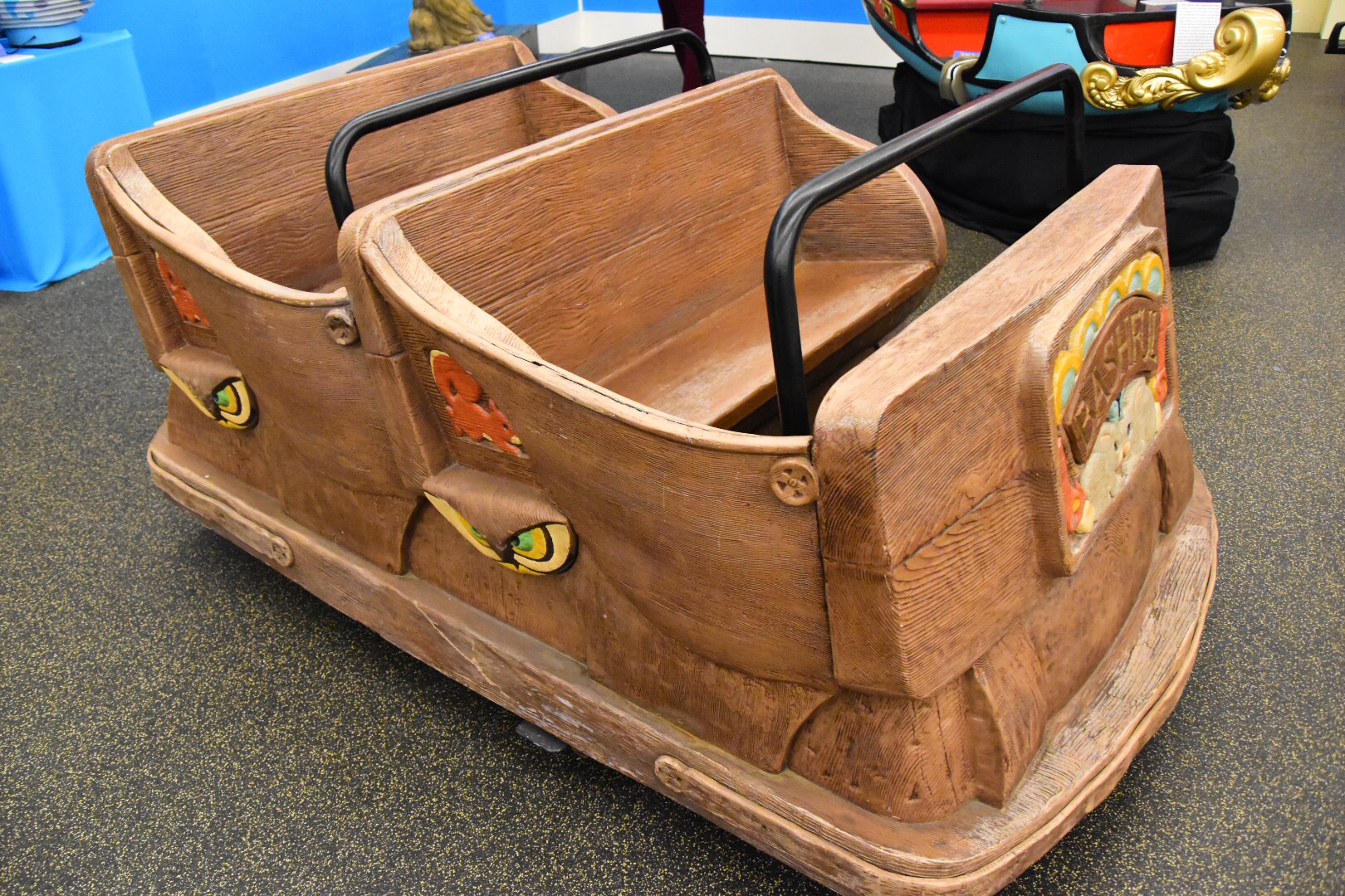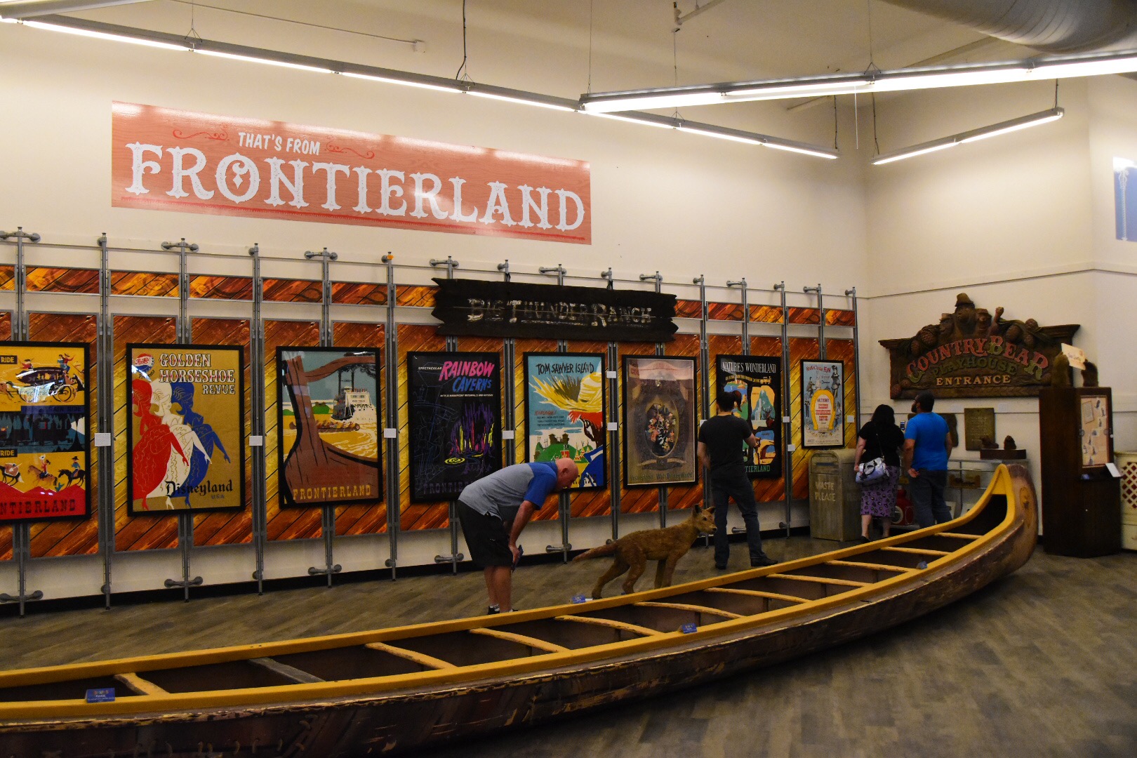 Another surprising thing to see is an empty canoe. I’ve ridden in them, and know they hold a lot of people. To see it on dry land makes me realize how long they really are. Beside it is the old Country Bears Playhouse sign, which sat above what is now the entrance to the Many Adventures of Winnie the Pooh. It seemed like a simple sign, but it really is quite a big display.