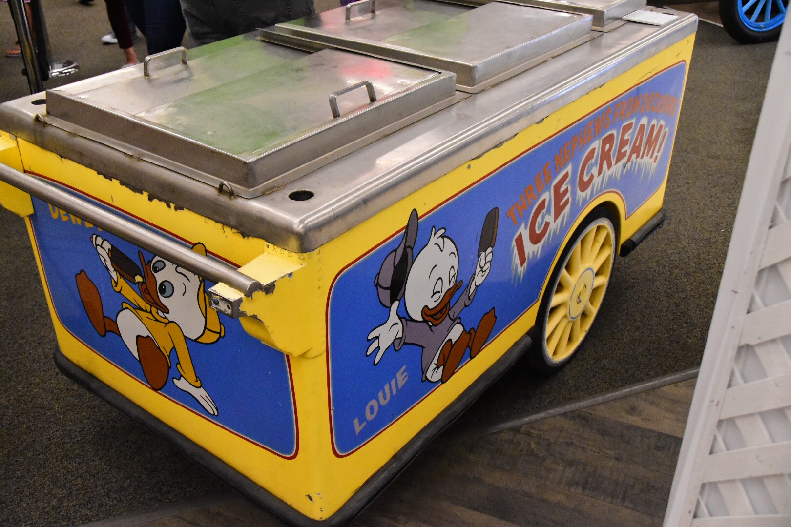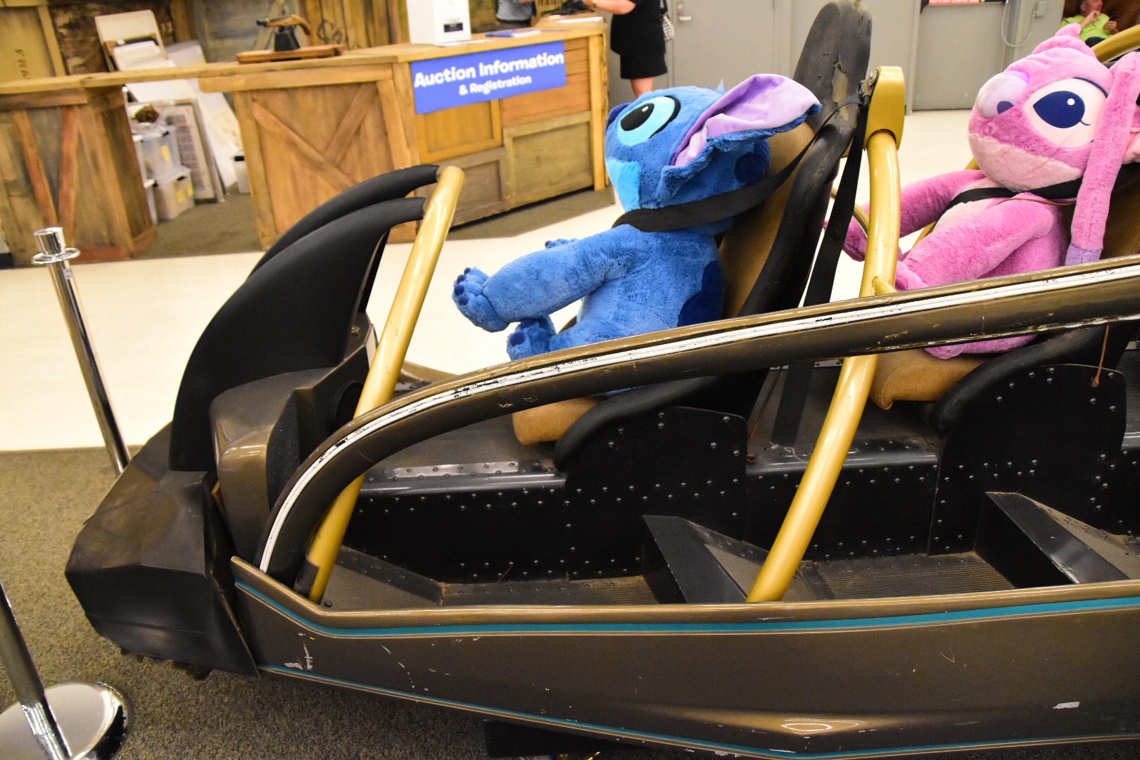The other thing about having things like signs and vehicles at eye level is finding out how large they really are. Up for auction and display is the large D from the former Disneyland Hotel sign that sat at the top of one of the towers. Sure it’s known that it was large to be able to see from a distance, but up close it dwarfs those standing by it!