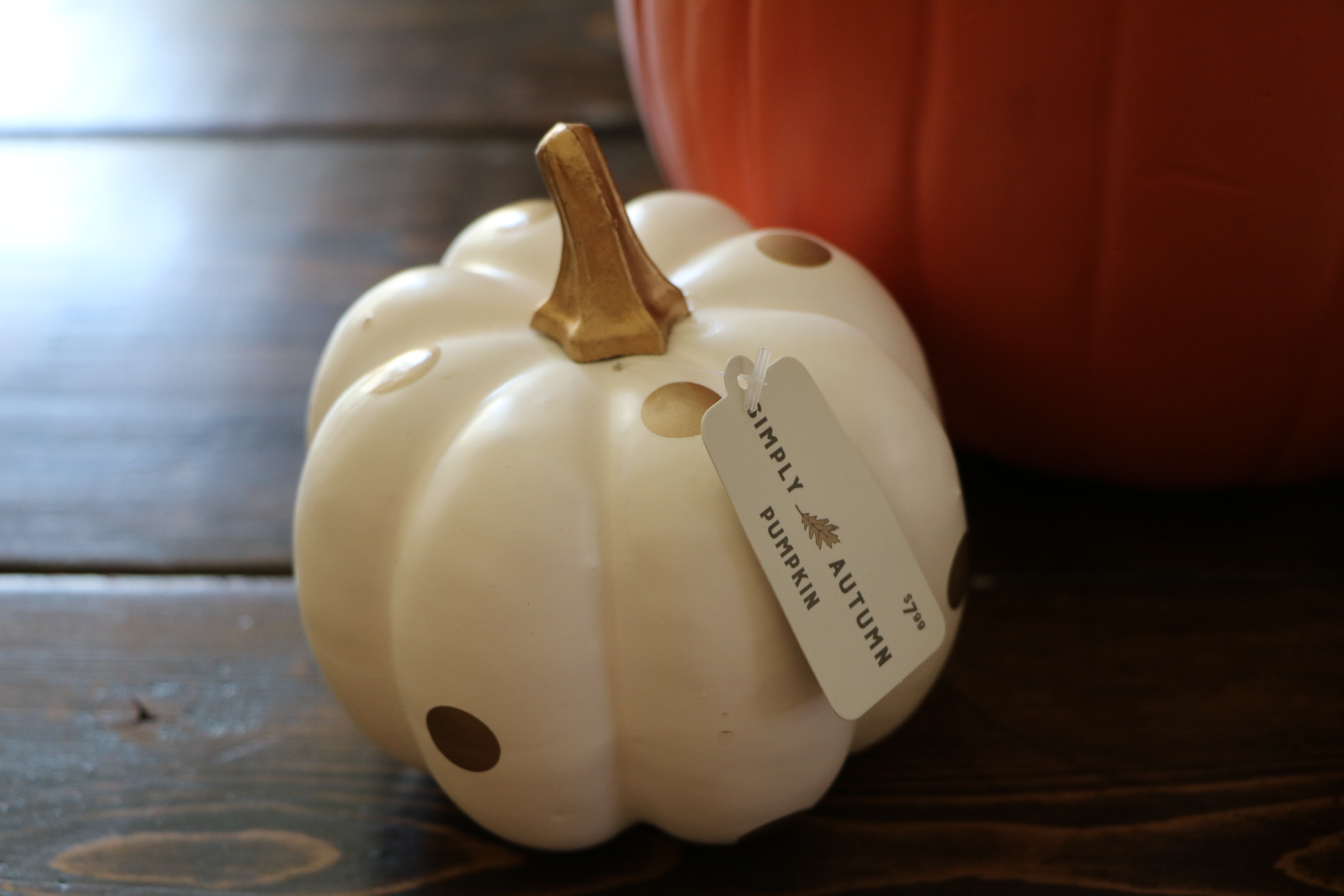 - Paint your pumpkins! The large one was orange, but I painted it a brighter orange. The small pumpkins were white, so I ended up painting them brown, and then orange over those coats to make the colors match between the small and large pumpkins.