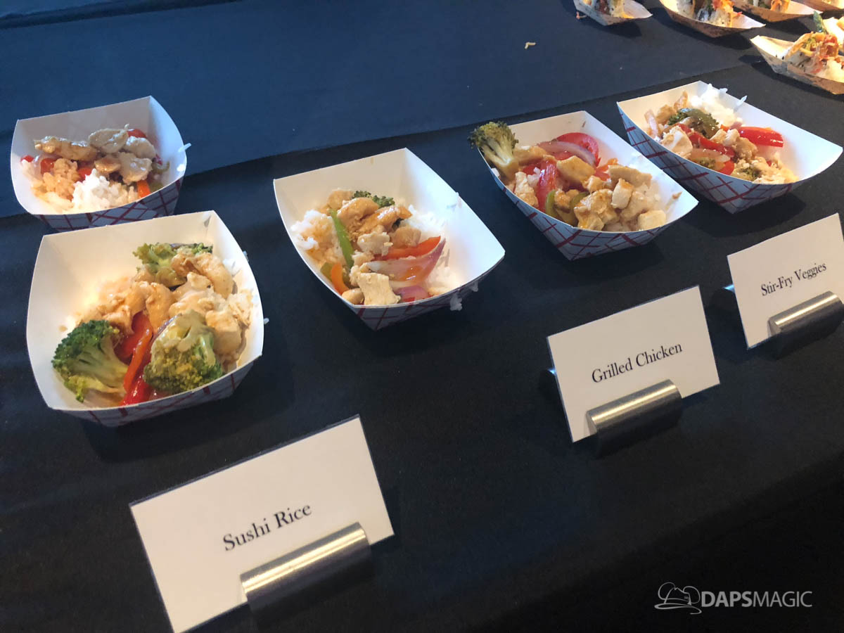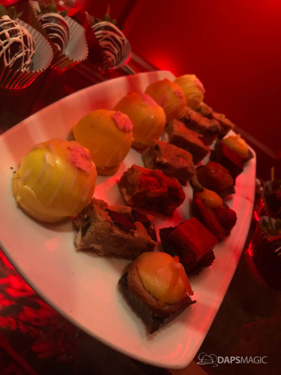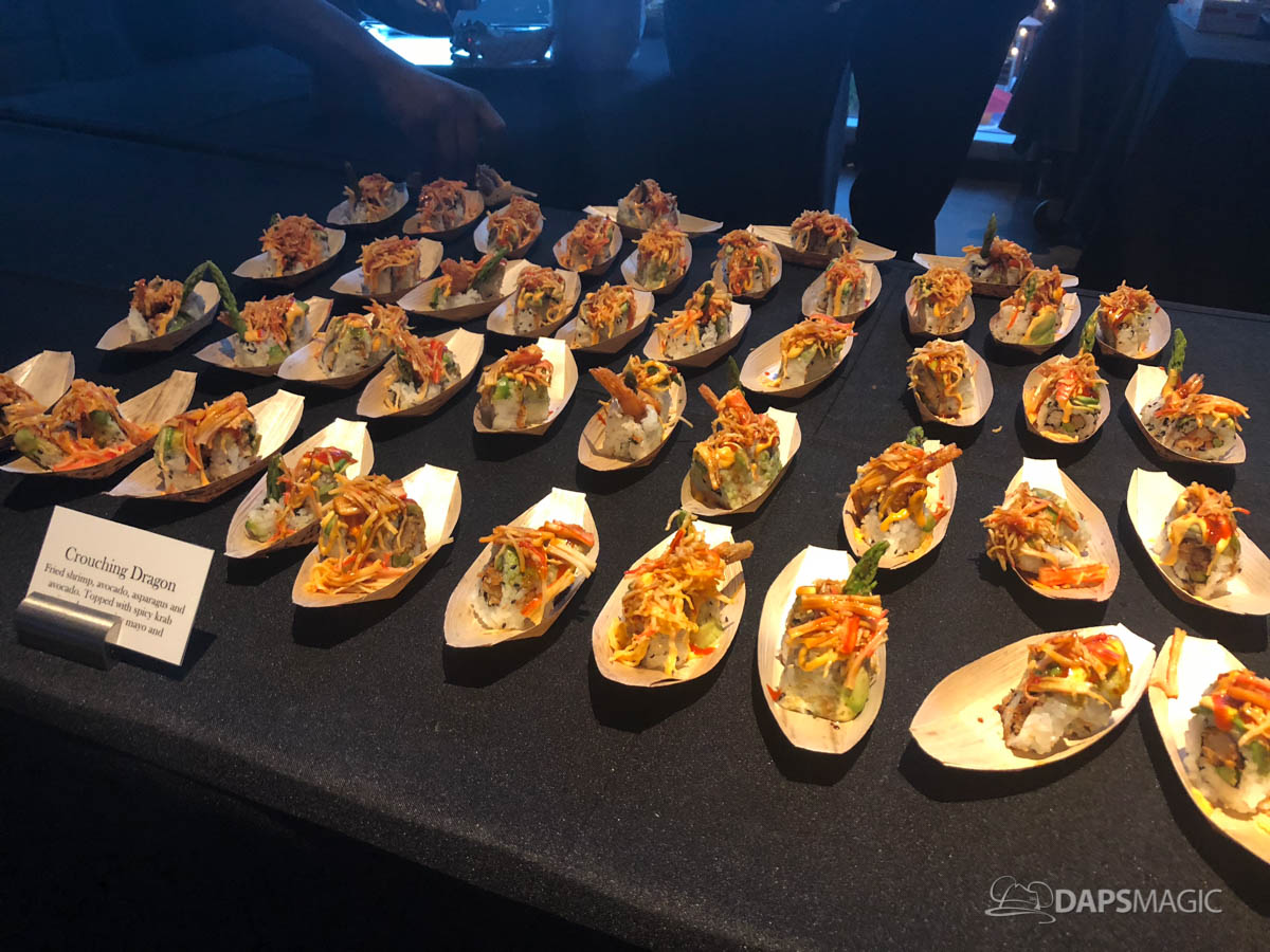 Splitsville Luxury Lanes was the third destination for us. As we enjoyed their food the sunset turned into evening and Downtown Disney came alive in the big windows outside. This quickly is becoming one of the most beautiful views of Downtown Disney. As our group walked to Splitsville, we anticipated the Parmesan Chicken Tenders we knew were in our future. Once inside though, I found myself enjoying the Crouching Dragon Rolls even more! Couple this with some fantastic company in a nice relaxed environment, this was a very fun stop. Here’s a look at what was offered by Splitsville for this event: