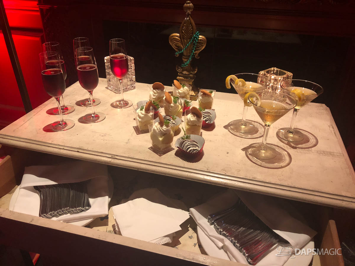 Each of these unique experiences added an extra element of magic to the evening. The DAPS MAGIC team experienced the Speakeasy at Ralph Brennan’s Jazz Kitchen. This took place in one of the upper rooms at Ralph Brennan’s Jazz Kitchen. After giving the themed “bouncer” the password to get in, we found ourselves in a beautiful room. A singer and pianist provided entertainment for the entire hour and a half experience. They were completely delightful. There was also a wide selection of desserts on hand that was accompanied by appropriate drinks. Our group of four were the last four to leave the speakeasy as we were just completely charmed by the atmosphere and the entertainment. It was a wonderful way to end a fantastic evening!