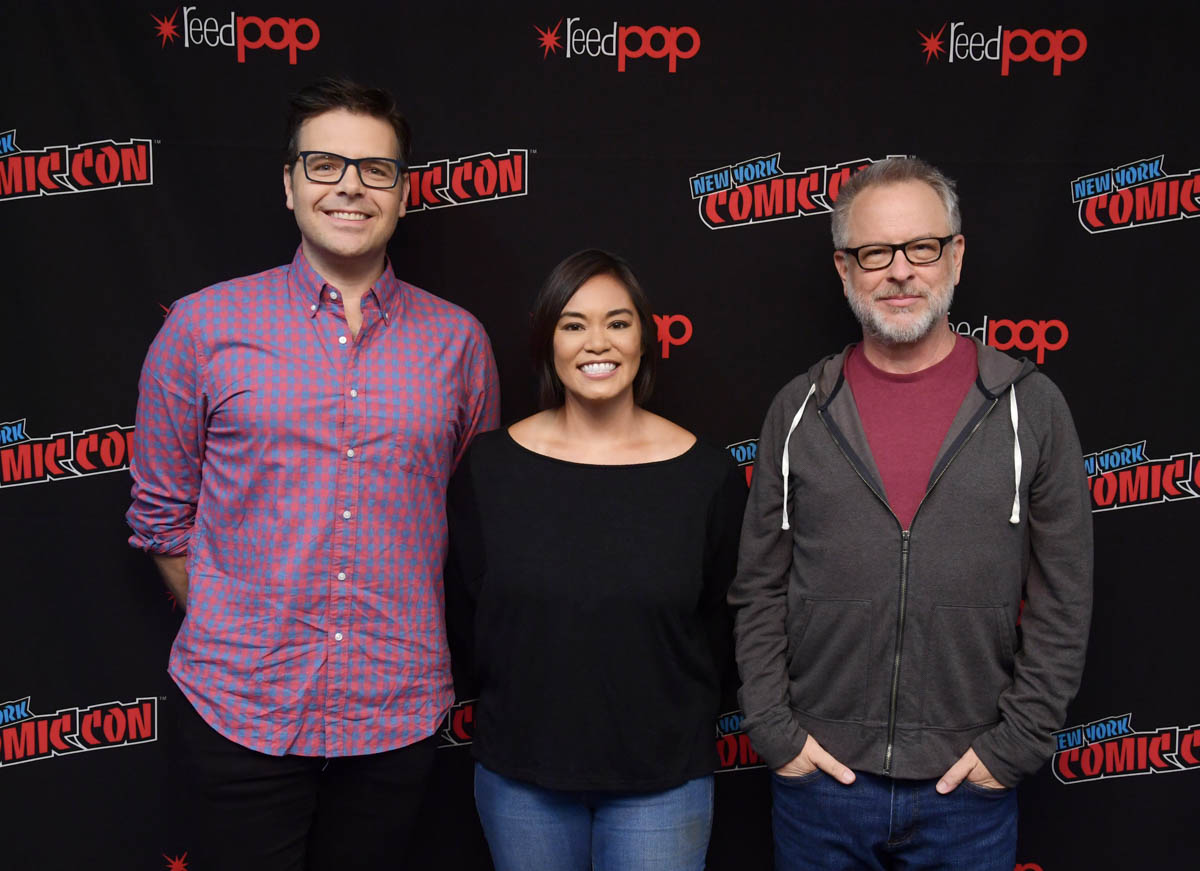 NEW YORK, NY – OCTOBER 05: RALPH BREAKS THE INTERNET writer/director Phil Johnston (L) and director Rich Moore (R) pose with head of story Josie Trinidad before revealing new details about the production and unveiling never-before-seen footage during a conversation with Dani Fernandez at New York Comic Con at Jacob Javitz Center on October 5, 2018, in New York City. (Photo by Ben Gabbe/Getty Images for Disney Studios) *** Local Caption *** Phil Johnston; Josie Trinidad; Rich Moore