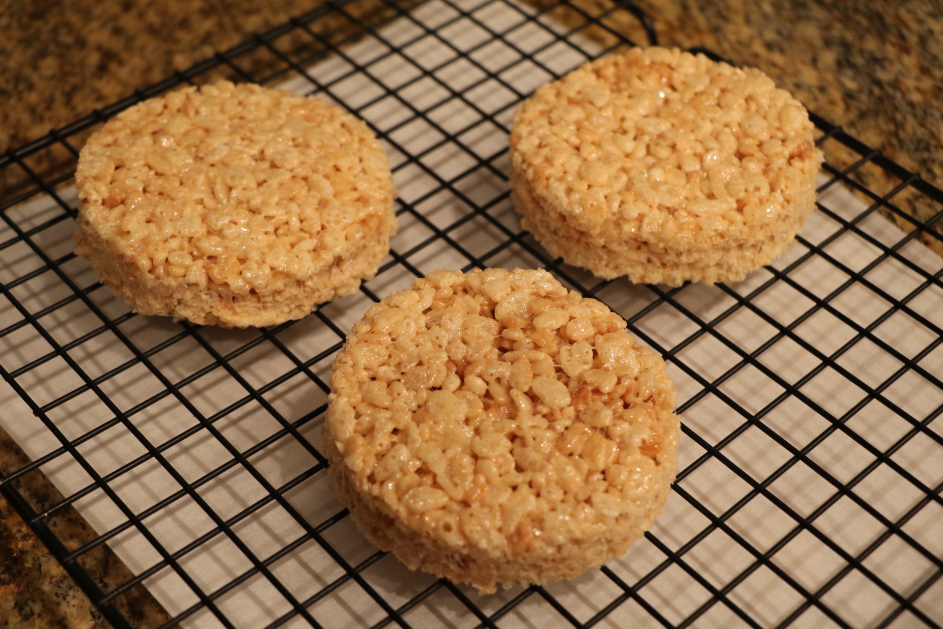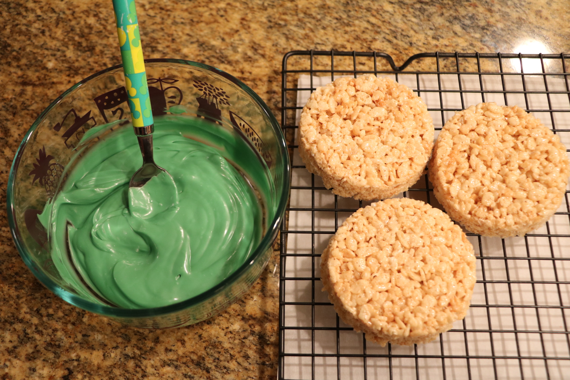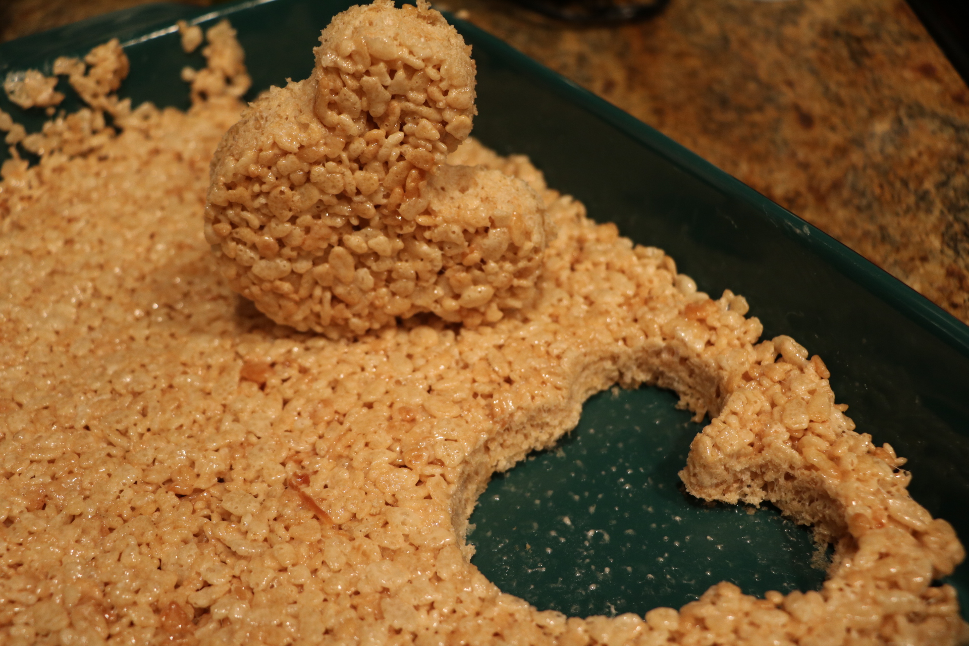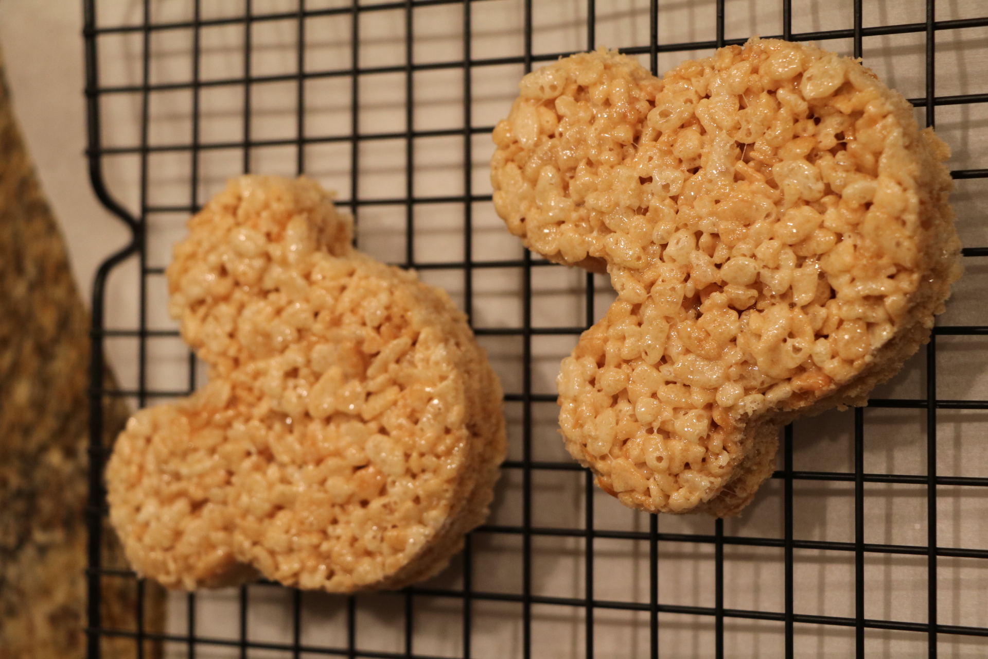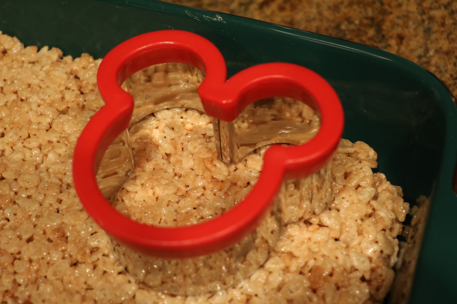 - Use shaped cutters and cut a few treats out to decorate. (I was able to get three circle treats and to Mickey treats from one pan.)