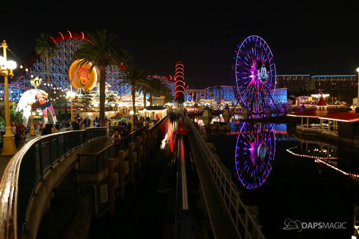 The night concluded with a stroll through Disney California Adventure taking photos of a lovely evening. The night was beautiful as we strolled passed Grizzly Peak, through Pixar Pier, Cars Land, and finally to Buena Vista Street before saying goodnight.