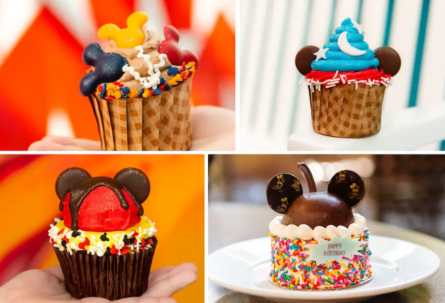 - Mickey’s Birthday Cake – vanilla cake with sprinkles, buttercream, and a chocolate Mickey medallion; available at Trolley Car Café, ABC Commissary, Rosie’s All-American Café, and Backlot Express