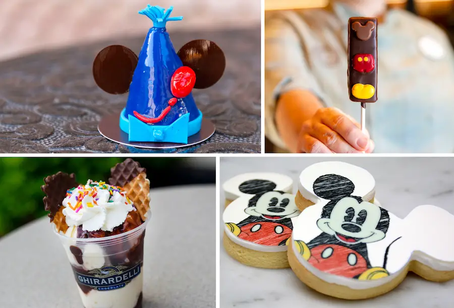- Steamboat Willie Heritage Mickey – white chocolate mousse tart with a dark chocolate mousse Mickey dome and chocolate buttons, ears, and tail; available at BoardWalk Bakery