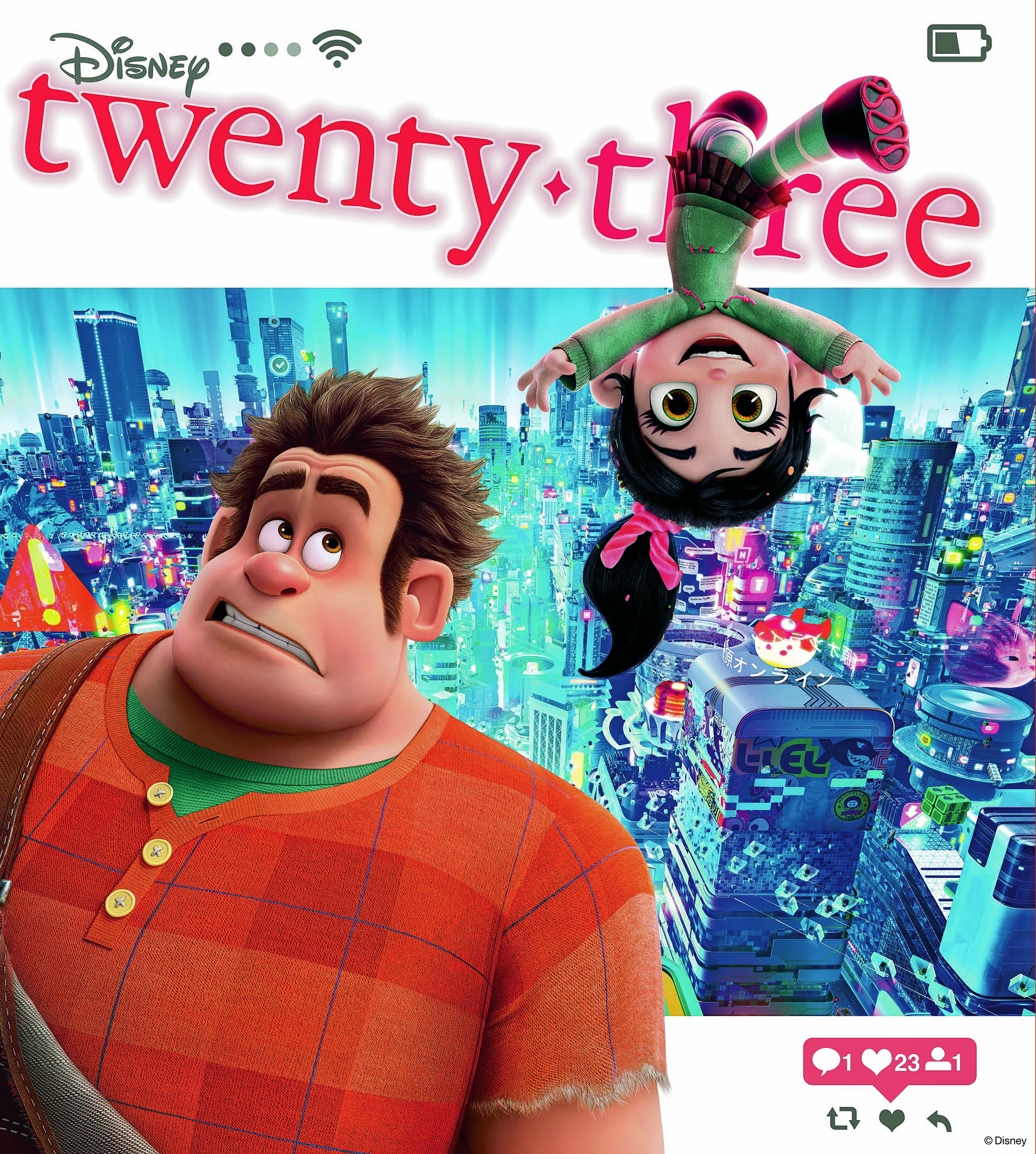 And before Poppins returns, another Disney favorite is returning, when Ralph Breaks the Internet hits screens this Thanksgiving. Directors Rich Moore and Phil Johnston and Vanellope herself, Sarah Silverman, guide us through the excitement Wreck-It Ralph will face in the wacky and wild World Wide Web. And the back cover of the new issue features an exclusive image created for D23 of the duo (lovingly) wrecking the Disney twenty-three logo.