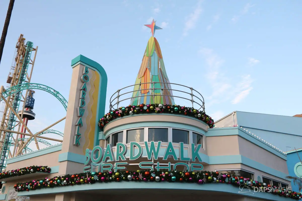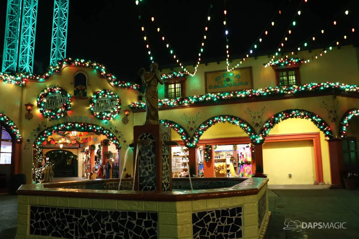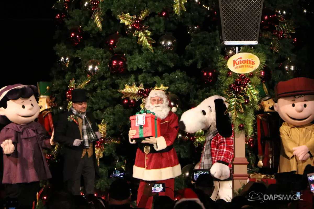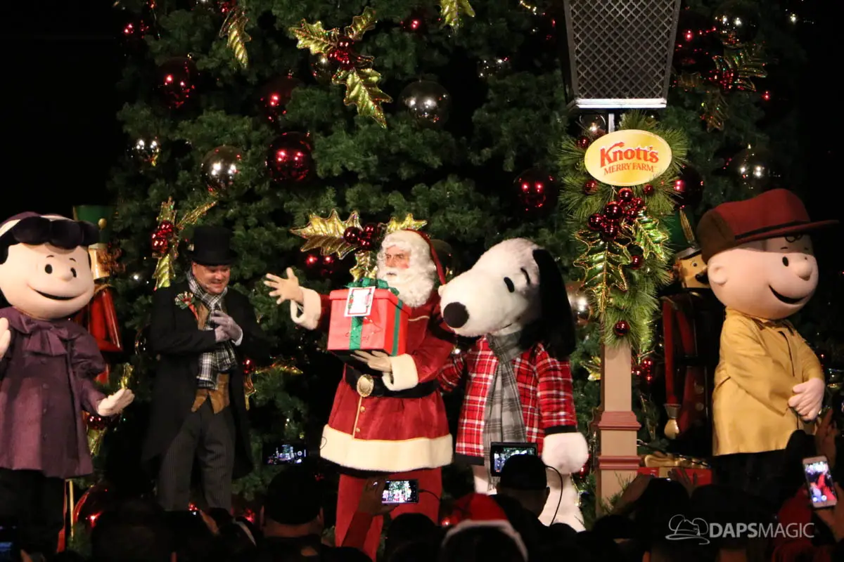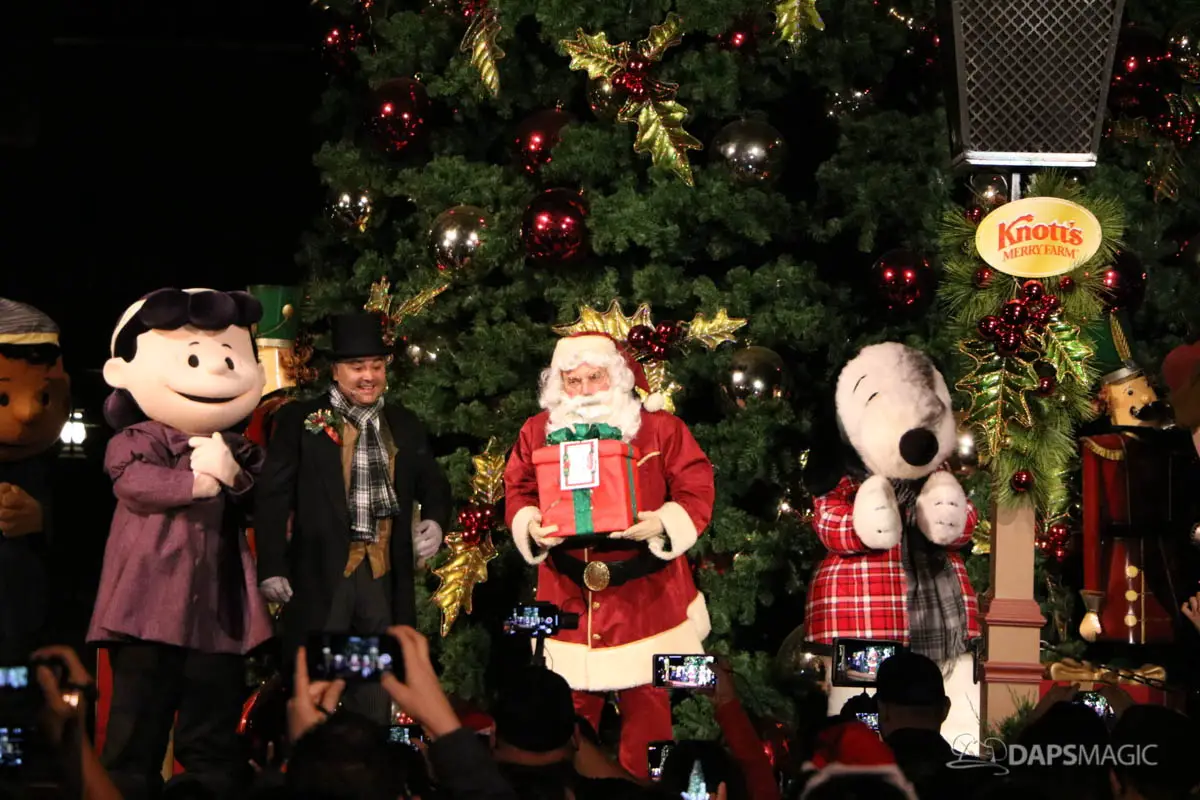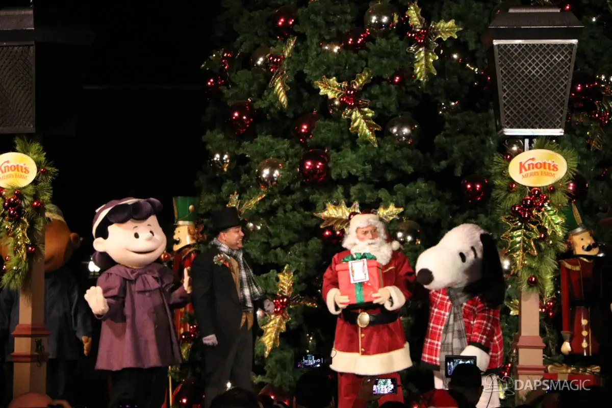 From the moment one enters Knott’s Berry Farm it becomes quickly apparent that the park has been transformed to celebrate the season. There are lights, garland, Christmas trees, and more pretty much everywhere! While it is beautiful during the day, at night it becomes absolutely stunning. The main Christmas tree is beautiful! Walk around the park and find other beautiful decorations in each corner of the park!