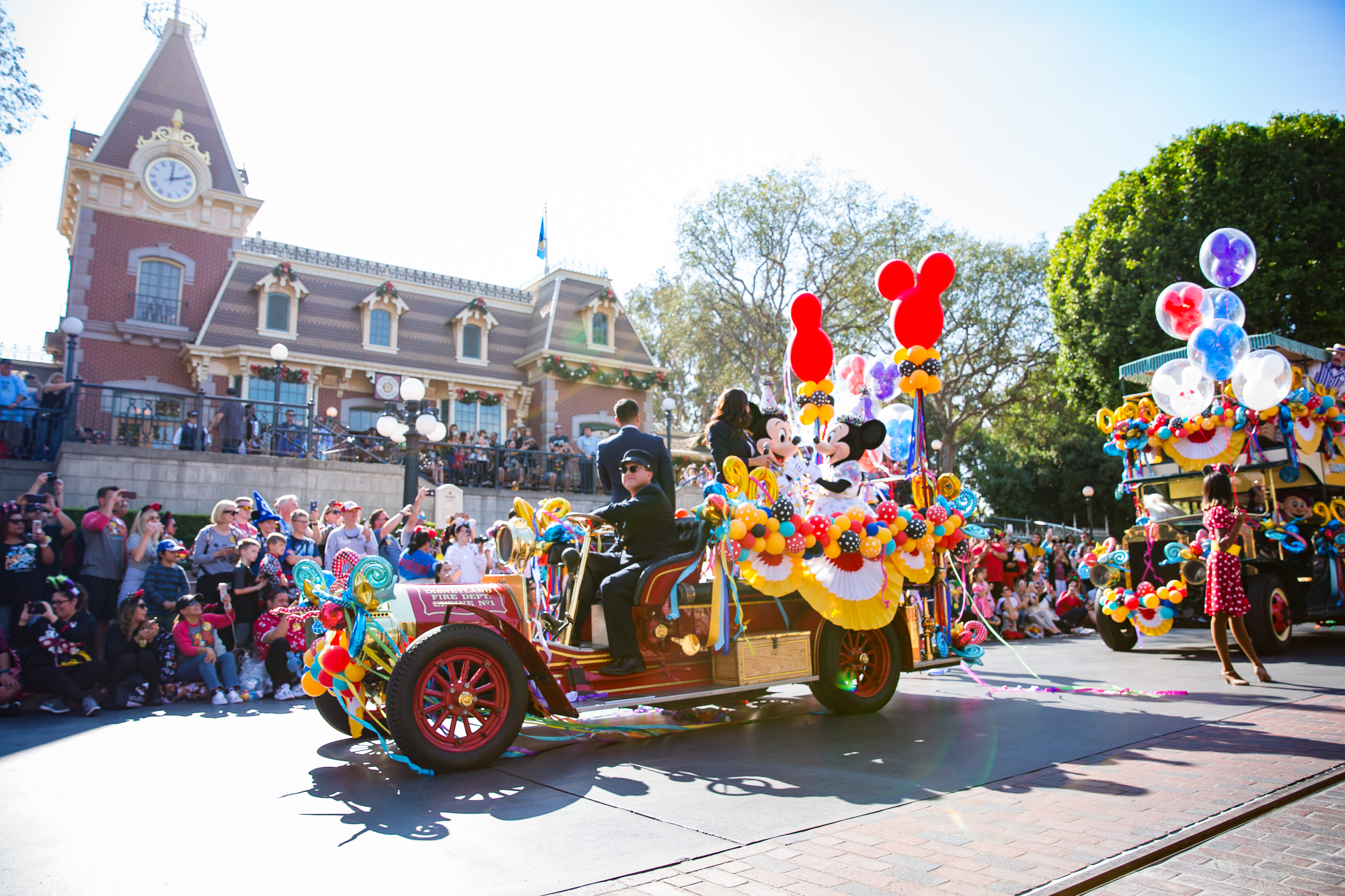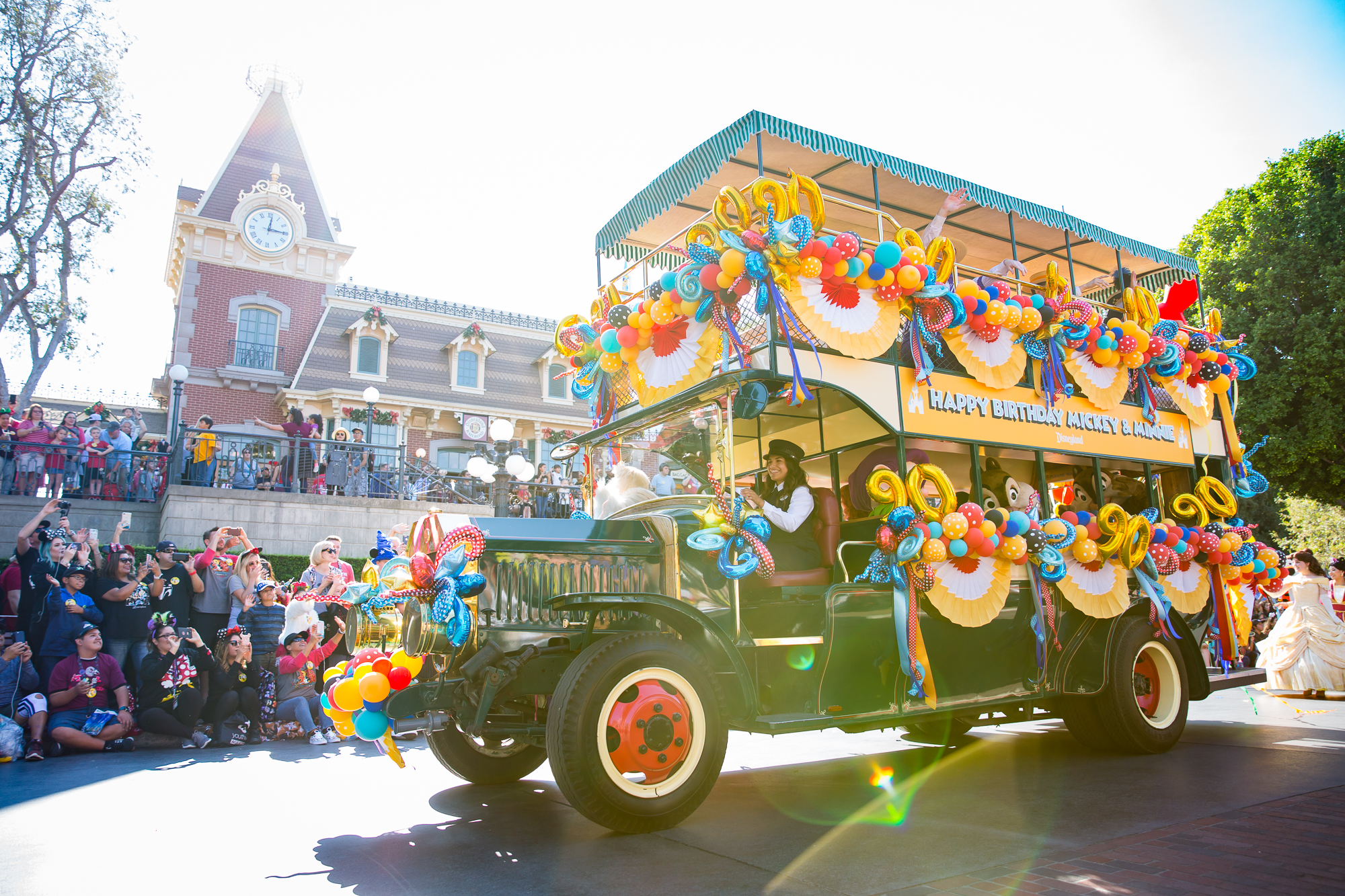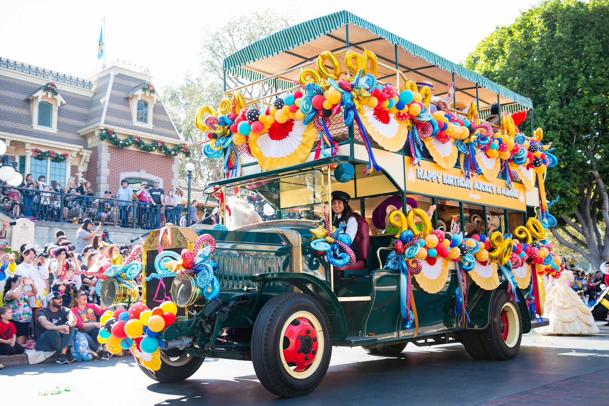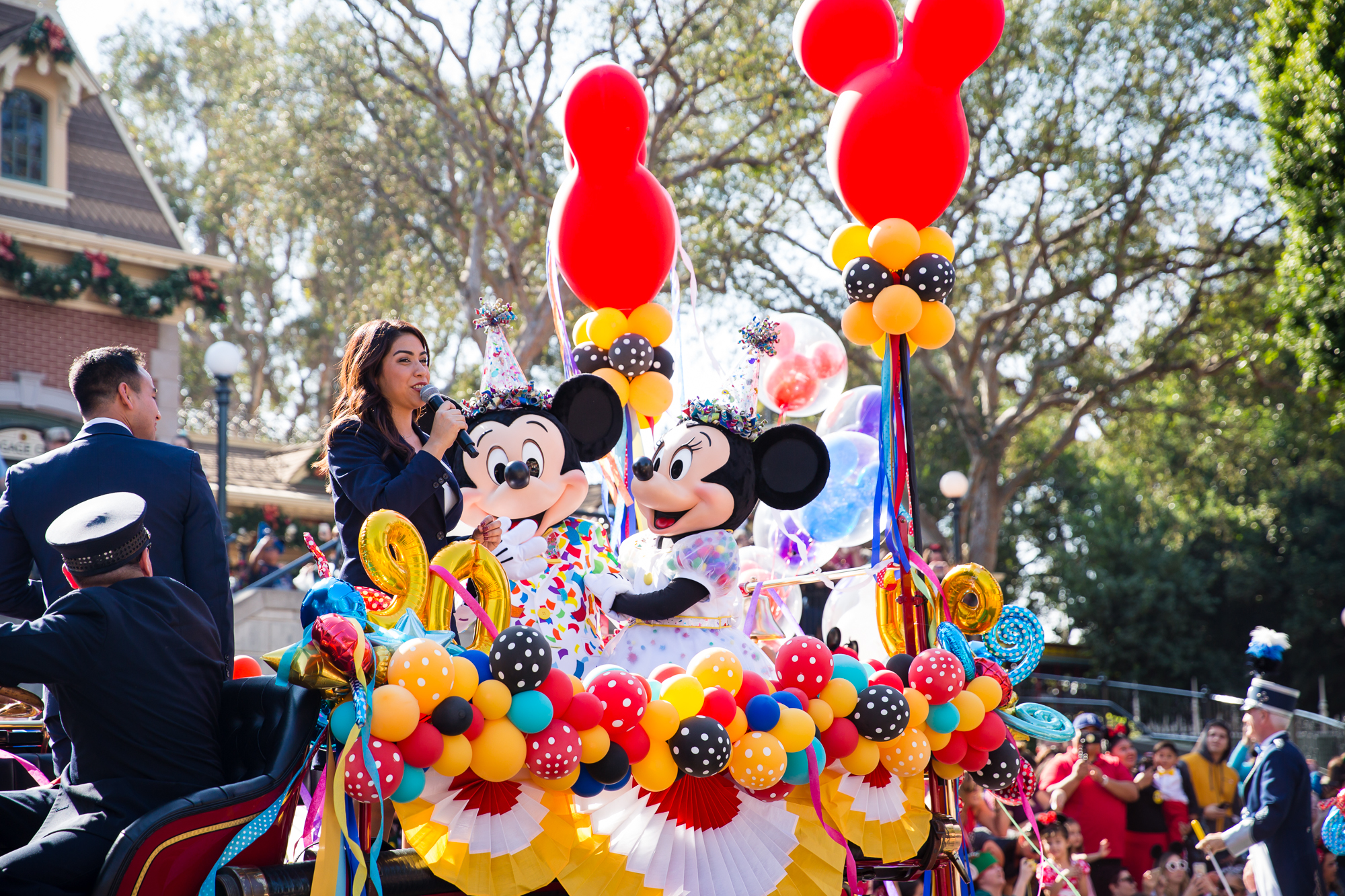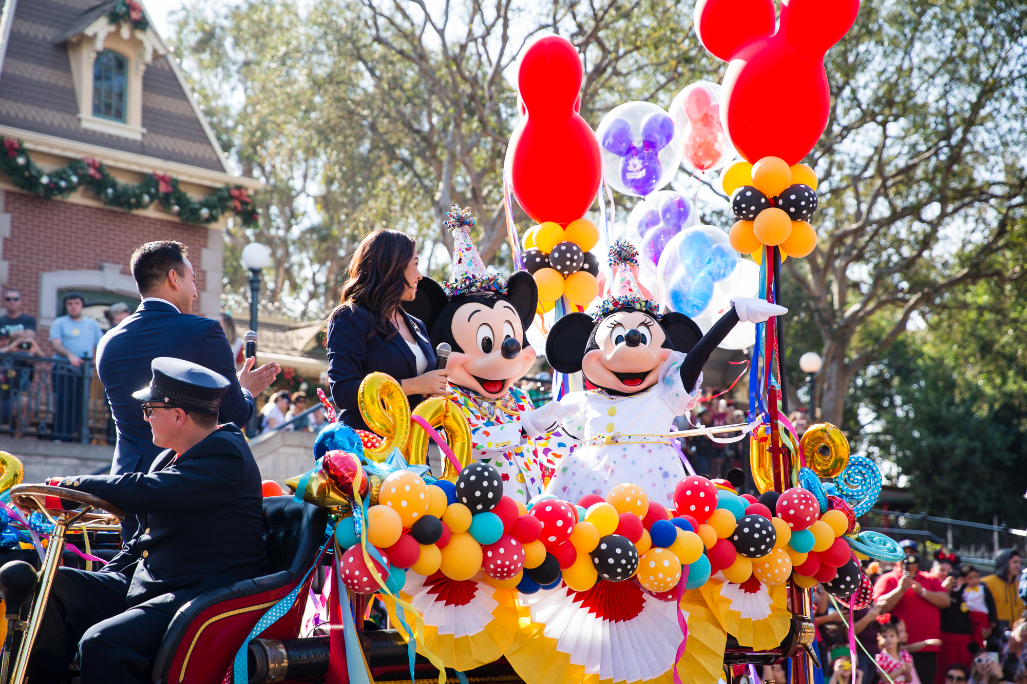 Have you heard? Mickey Mouse & Minnie Mouse celebrated their 90th birthday over the weekend on November 18, 2018! It was a celebration made for you and me and of course, Mickey and Minnie fans of all ages! Festivities were taking place throughout the Disneyland Resort, but one of the fan-favorite parts of the celebration was Mickey & Minnie’s Birthday Cavalcade! Nearly 50 of our favorite pals, plus the Dapper Dans, the Disneyland Band Director Kurt, some phenomenal dancers, and Disneyland Resort Ambassadors Mikey Trujillo and Alexa Garcia came out to celebrate the “Big Cheese” and his leading lady with a cavalcade that started near “it’s a small world” and traversed all the way down to Town Square on Main Street, U.S.A. with four separate Celebration Stops along the route.