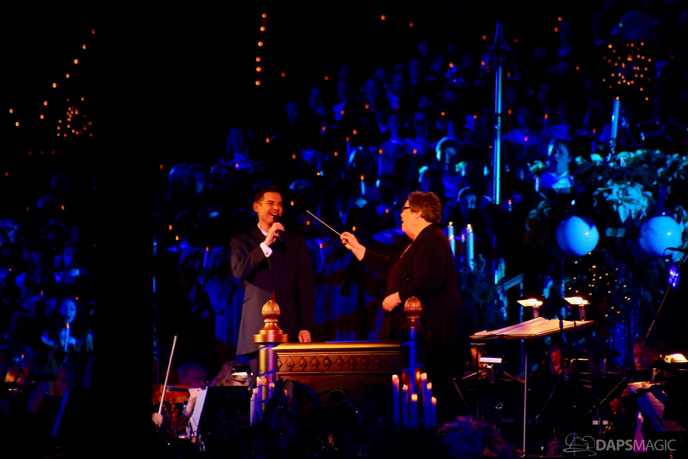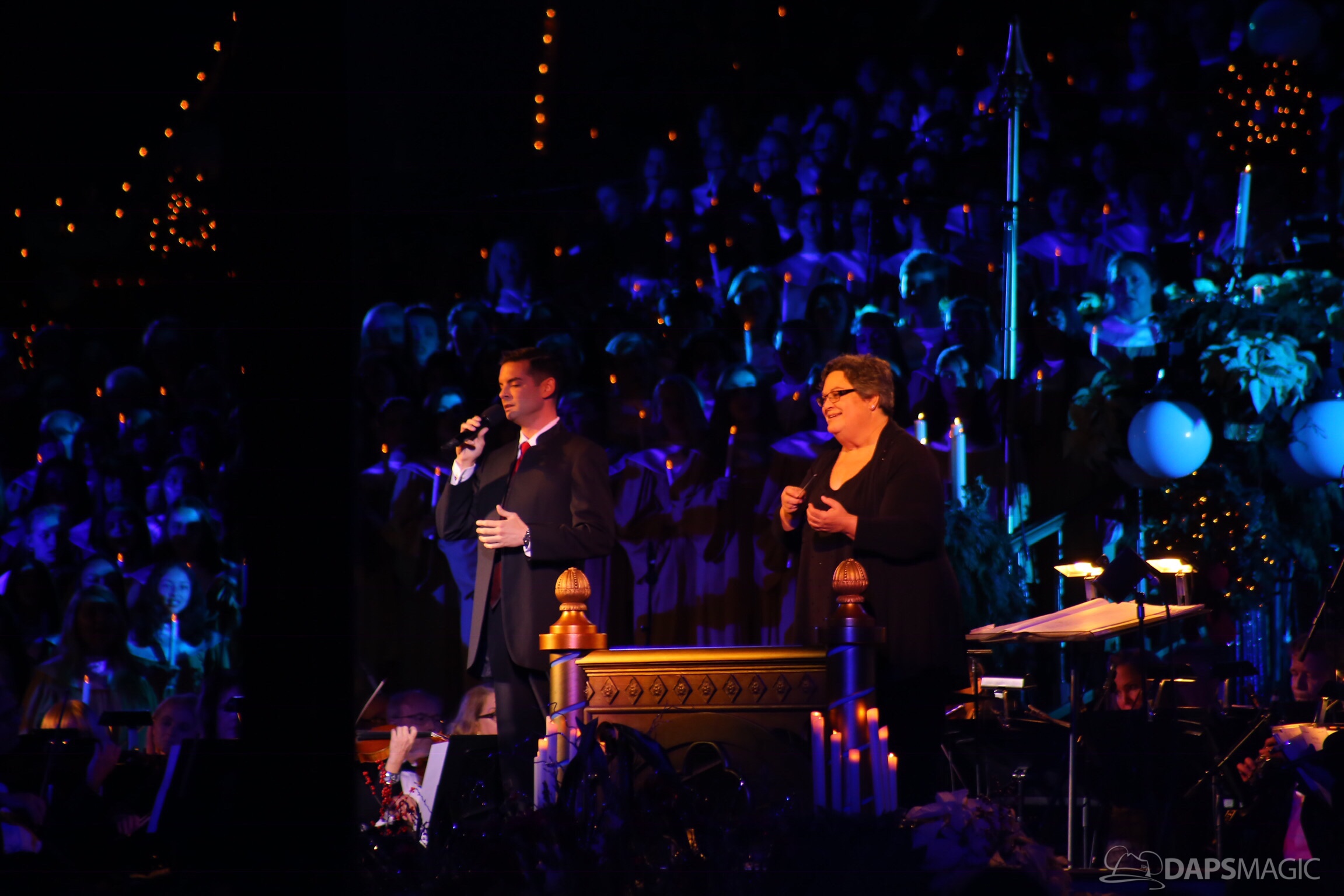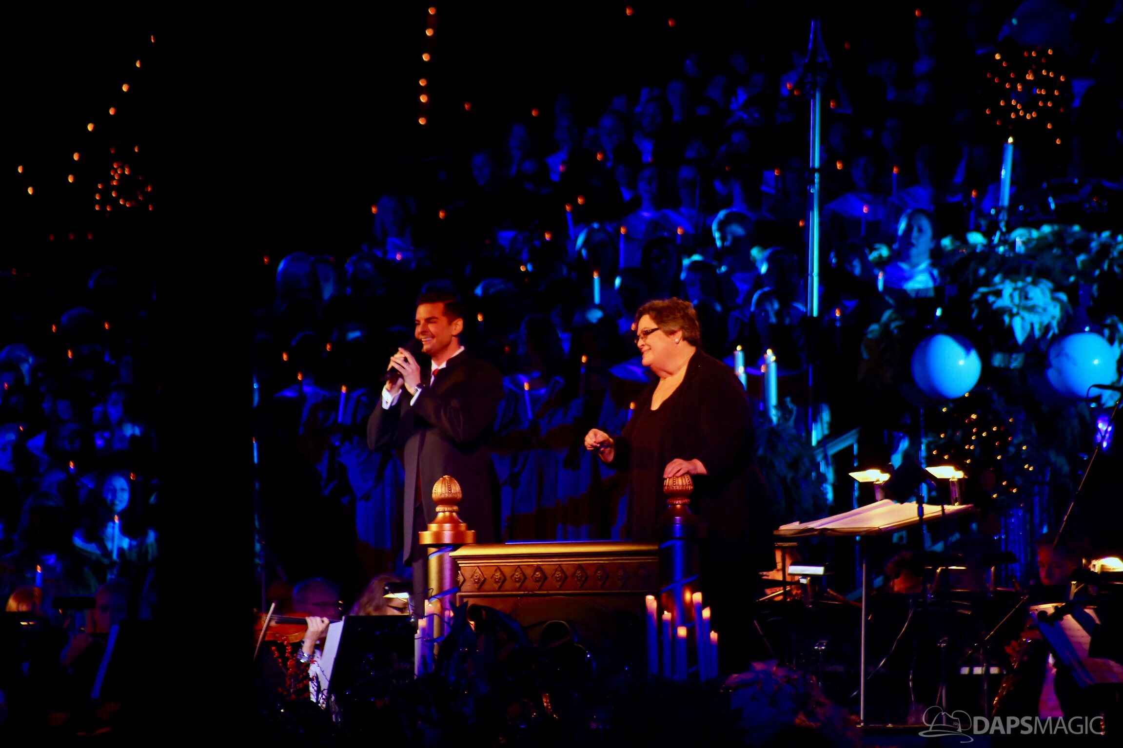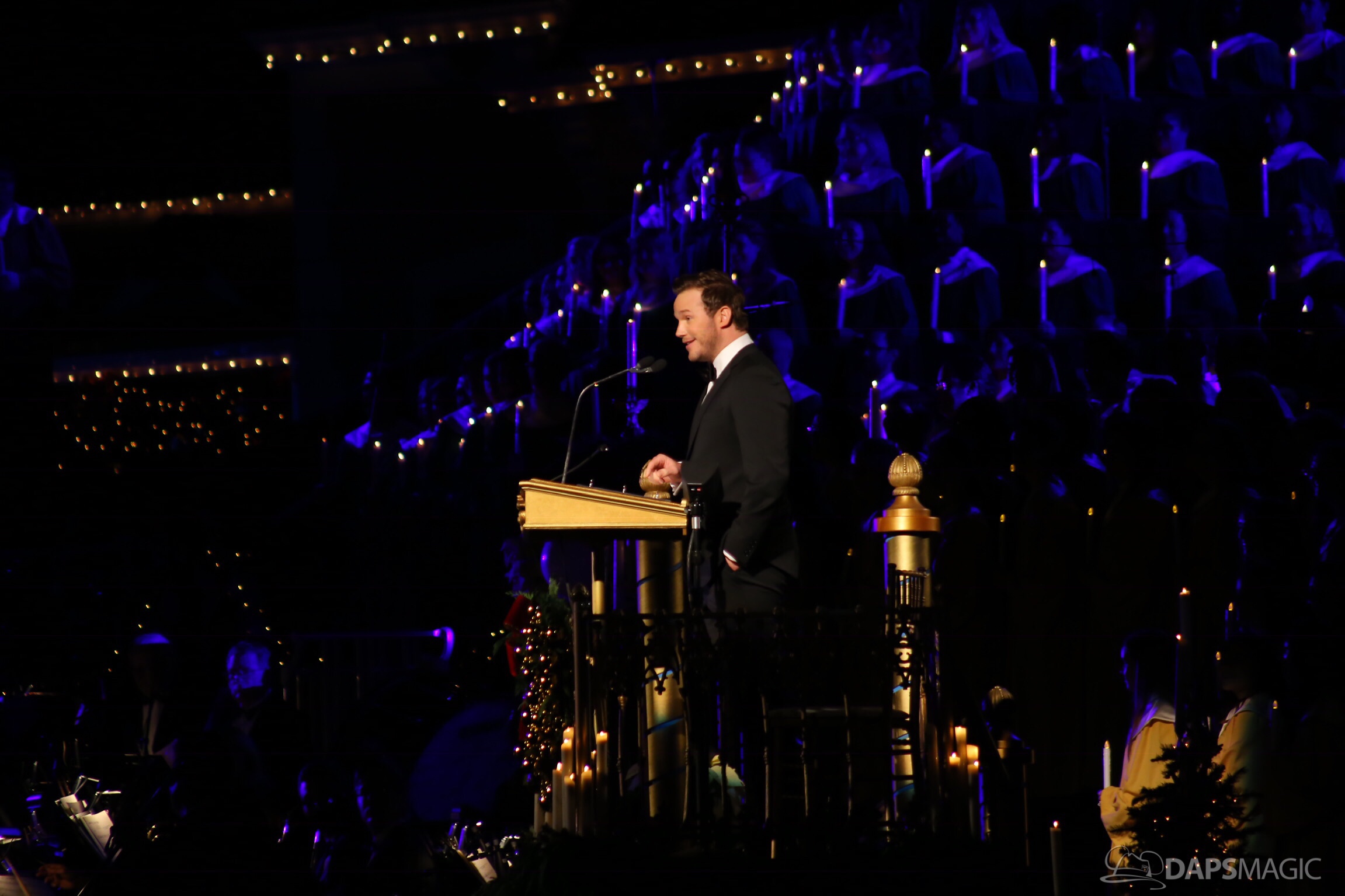 The Candlelight Ceremony is celebrating it’s 60th anniversary this year. Each year a celebrity narrator joins a large choir, orchestra, handbells, fanfare trumpeters, and soloists in front of the Train Station in Town Square to share the story of Christmas. This is a rich tradition that dates all the back to 1958 and Walt Disney.