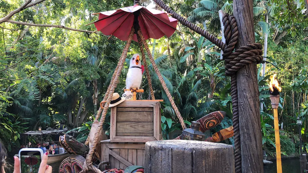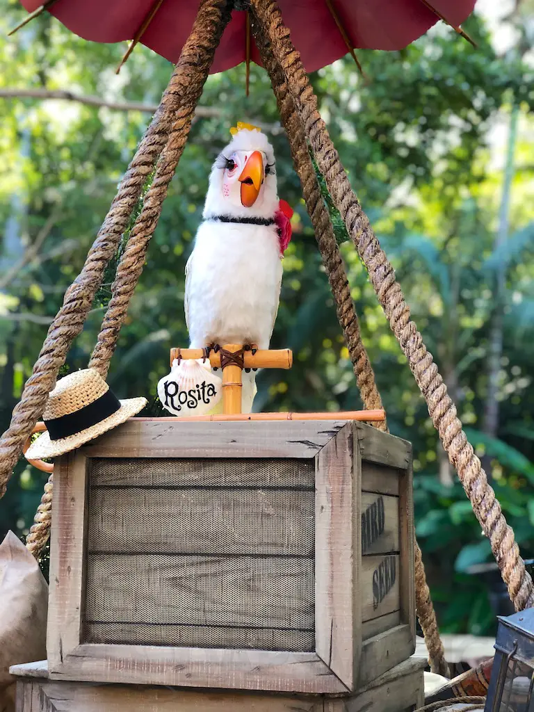 Of course, there is Rosita who has made her nest here. She is right by the Jungle Cruise river and tells some jokes that could be right from the attraction.