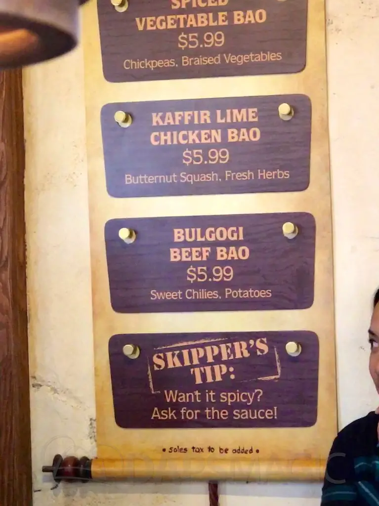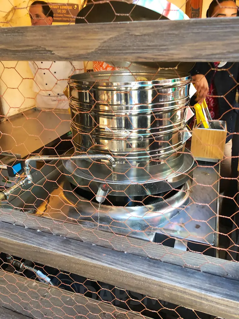 At the other stand are a variety of bao buns. Chicken, beef bulgogi, and vegetable are the flavors of buns. Also featured here are the famous Pongo Lumpias that was first introduced in World of Avatar over in Animal Kingdom. The Lumpias are spring roll-like desserts with pineapple cream cheese and cinnamon sprinkled on the outside. When you order it comes in two along with a dipping sauce!