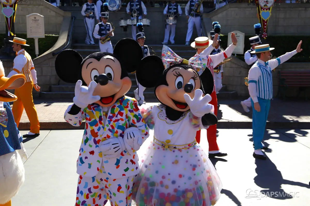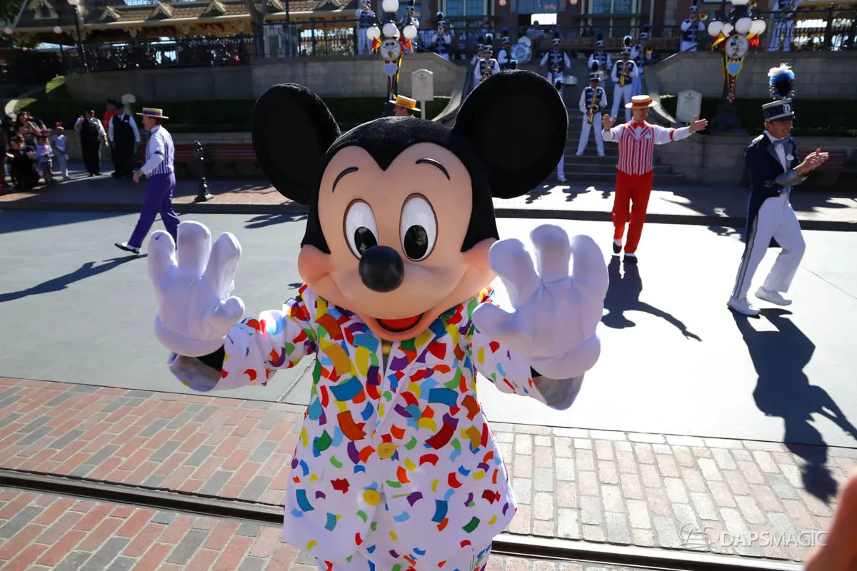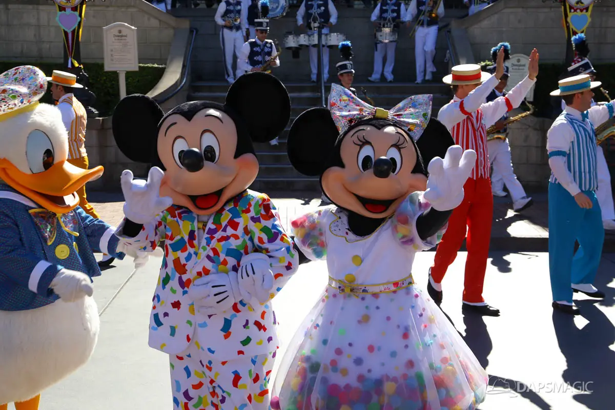 Mickey, Minnie, and the gang debuted their new celebration outfits at the Disneyland Resort on Friday. The Get Your Ears On – A Mickey and Minnie Celebration clothing celebrate Mickey and Minnie’s 90th birthdays. They have a confetti theme and judging by the guests in the park on Friday, will be incredibly popular. Multiple guests showed up wearing outfits inspired by the new outfits the Fab Five are now wearing.