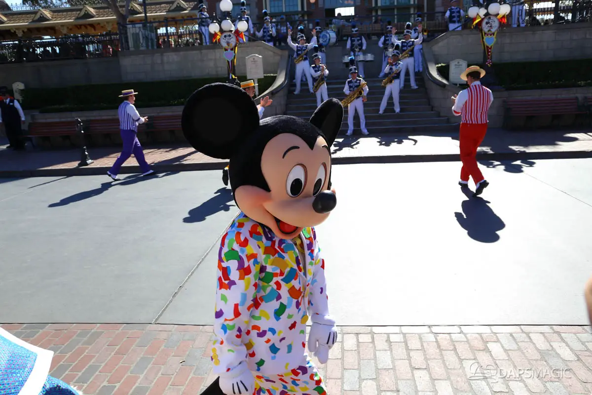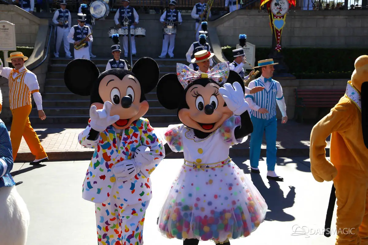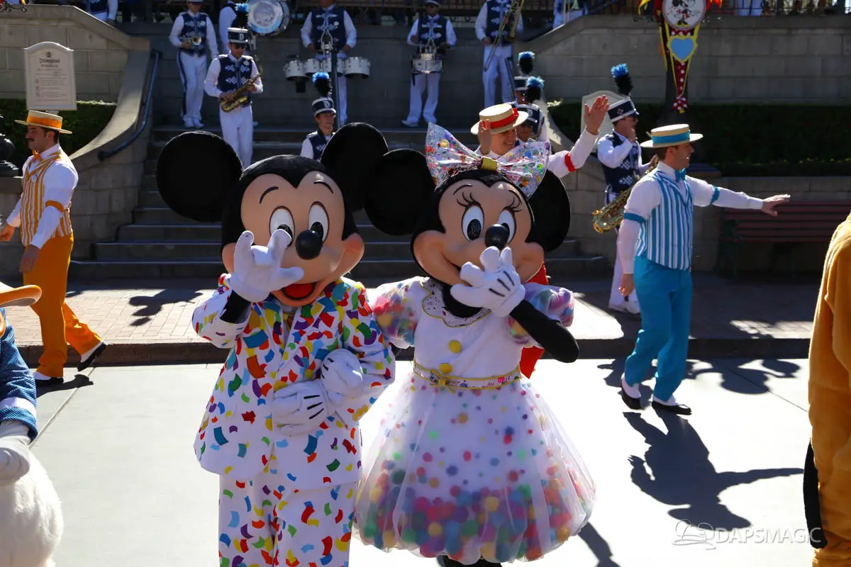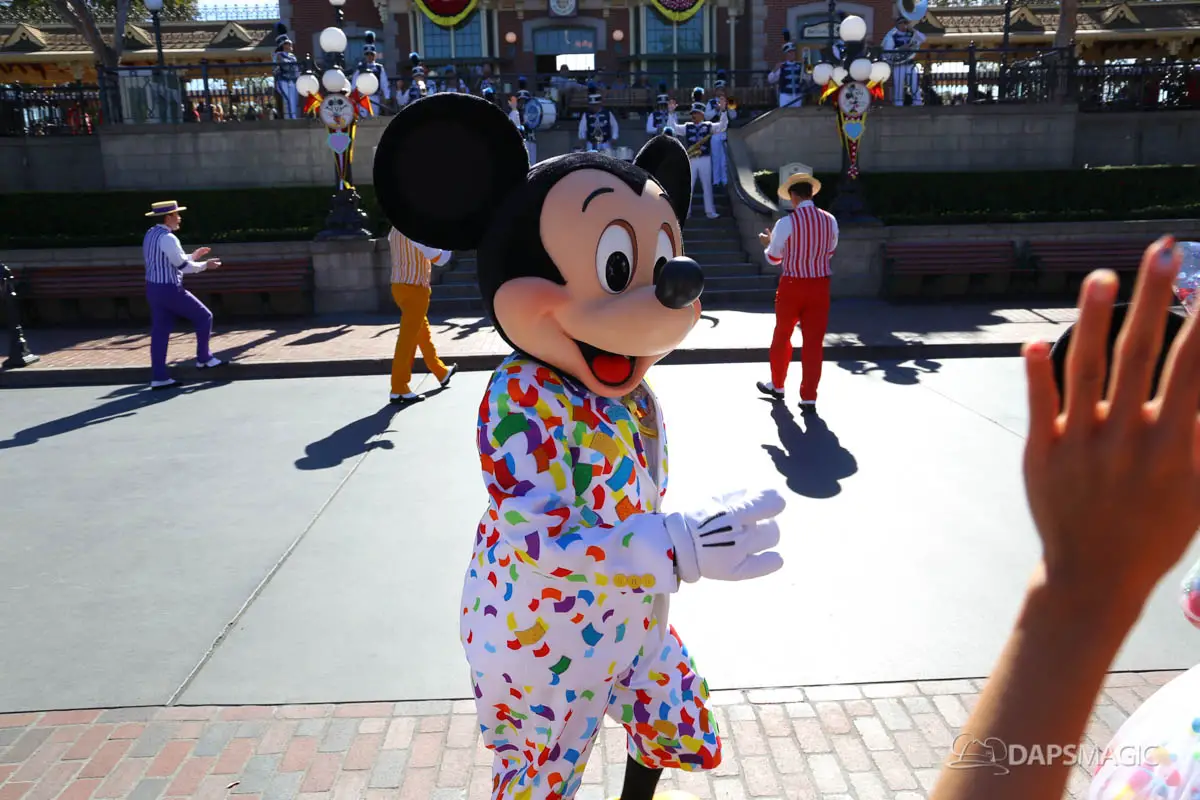 Mickey, Minnie, and the gang debuted their new celebration outfits at the Disneyland Resort on Friday. The Get Your Ears On – A Mickey and Minnie Celebration clothing celebrate Mickey and Minnie’s 90th birthdays. They have a confetti theme and judging by the guests in the park on Friday, will be incredibly popular. Multiple guests showed up wearing outfits inspired by the new outfits the Fab Five are now wearing.