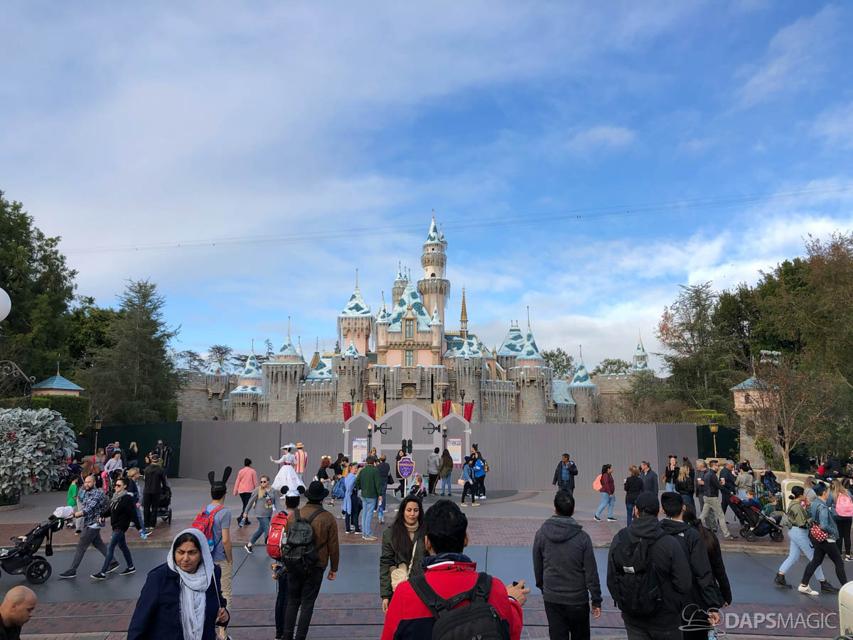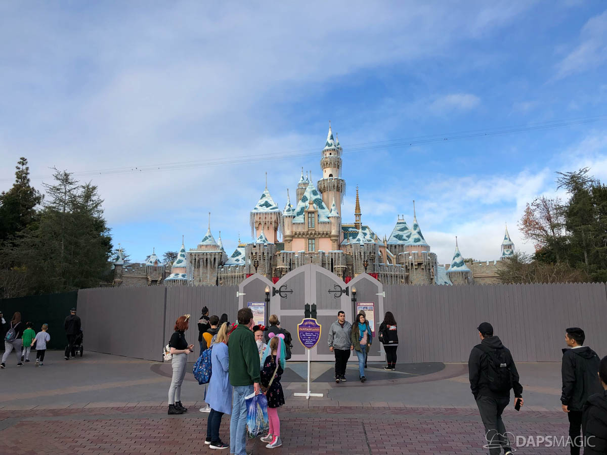 Sleeping Beauty Castle has begun its refurbishment at the Disneyland Resort. Overnight walls were erected in front of the castle and on its sides. The Fantasyland side of the castle has walls underneath the entrance to the drawbridge and Snow White Grotto area. Currently, guests can walk around the West side of the castle to enter Fantasyland. Guests can also wander around the East side of the castle to see Snow White Grotto. However, they can not enter Fantasyland from that side.