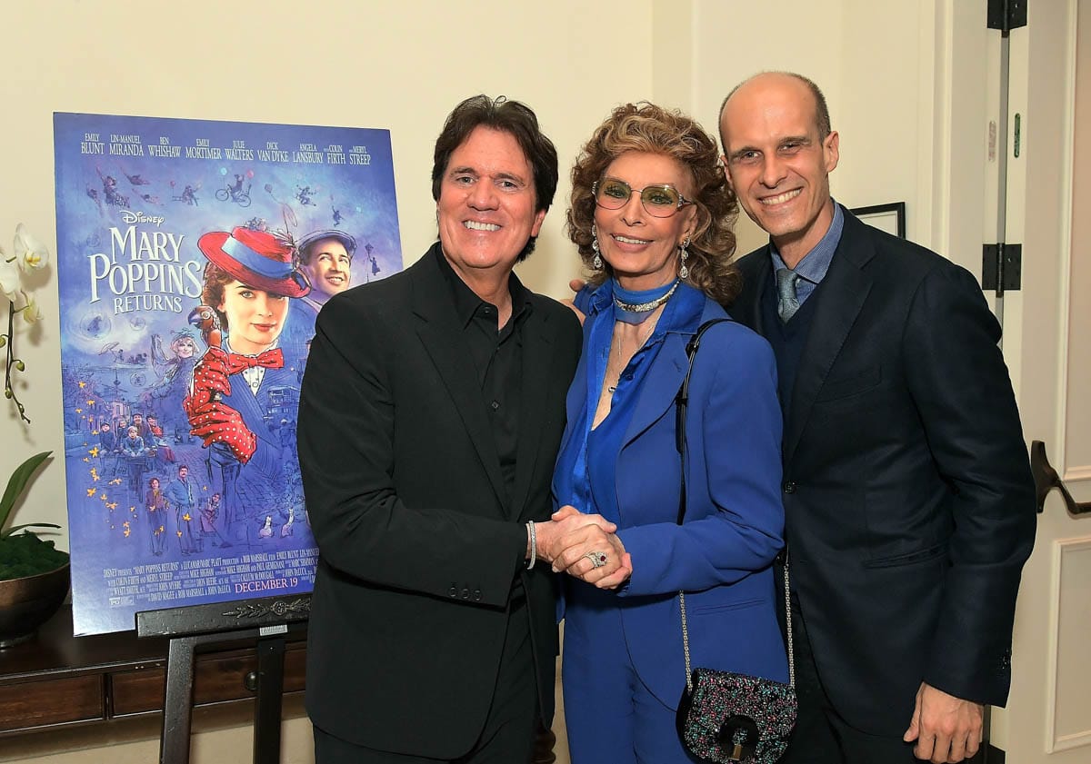 BEVERLY HILLS, CA – JANUARY 11: Sophia Loren host a star-studded reception for “Mary Poppins Returns,” nominated for 4 Golden Globe® Awards including Best Picture, 9 Critics’ Choice Awards and AFI’s Top 10 Films of 2018 at a special screening. Filmmakers joining her at the reception were: director Rob Marshall, producer John DeLuca, director of photography Dion Beebe, production designer John Myhre, composer, songwriter/co-lyricist Marc Shaiman and co-lyricist Scott Wittman>> at Montage Beverly Hills on January 11, 2019 in Beverly Hills, California (Photo by Charley Gallay/Getty Images for Disney) *** Local Caption *** Rob Marshall;Sophia Loren;Edoardo Ponti