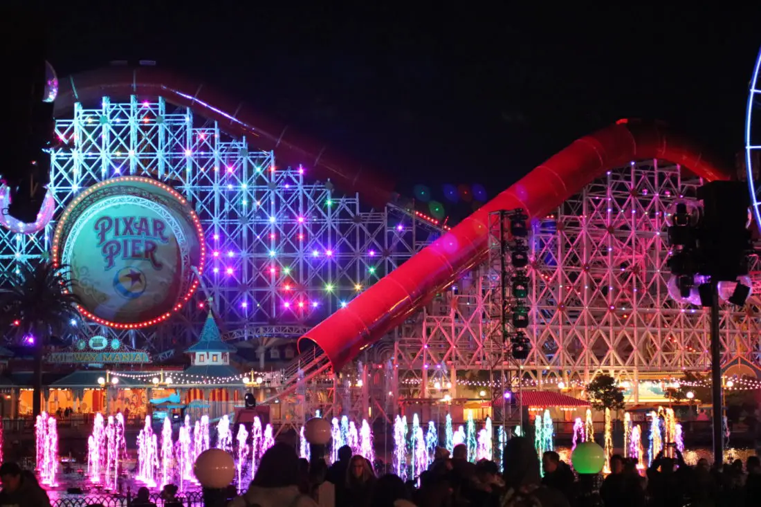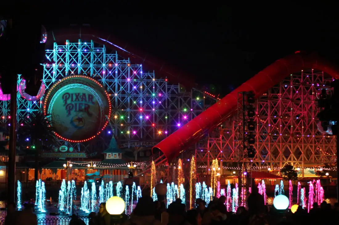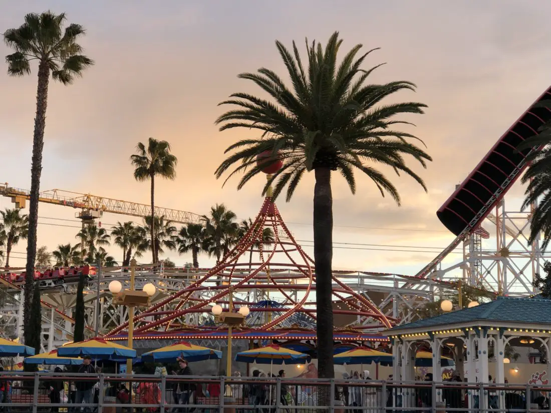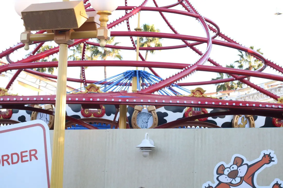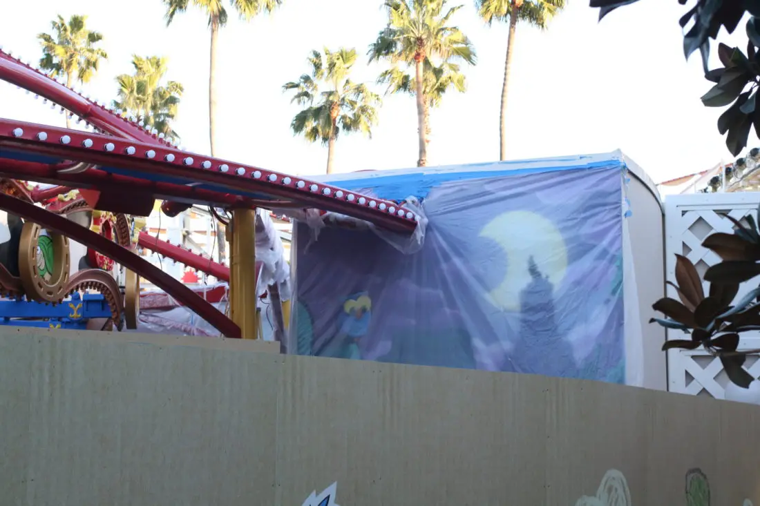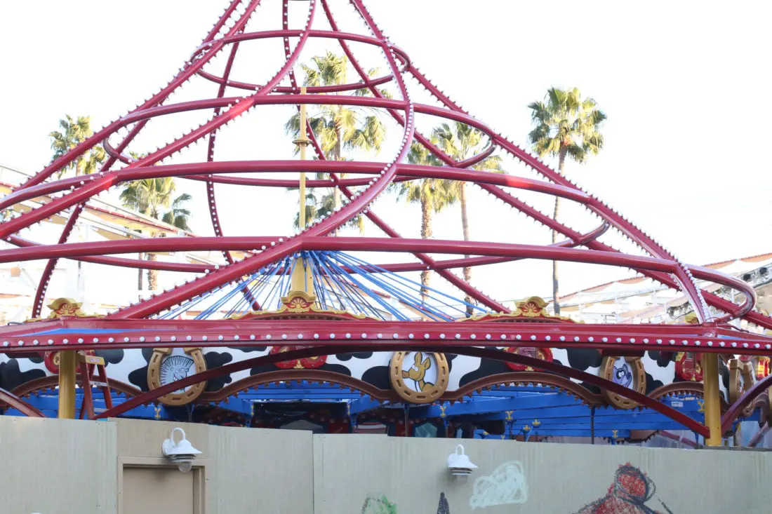 While there is no opening date yet, Jessie’s Critter Carousel is progressing nicely, and has started to test the lights at night. Over by Guardians of the Galaxy Mission: Breakout!, you can see prominent icons of the park, now that A Bug’s Land has been demolished to make way for the upcoming Marvel Land. You can see Cars Land, parts of Pixar Pier, Grizzly Peak, and Carthay Circle now!
