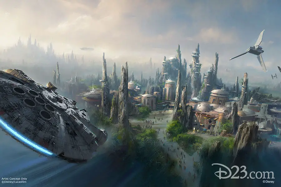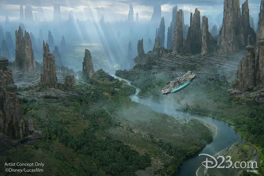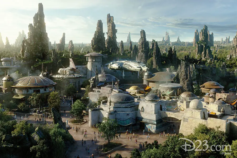 There are three carefully designed entrance points to Galaxy’s Edge in Disneyland, allowing guests to enter via Critter Country, Fantasyland, or Frontierland, and two entrance points at Disney’s Hollywood Studios. Enclosed passageways between lands are designed to compress and then expand the views of visitors, like a movie fading out and then back in, to ensure that the first sight of Galaxy’s Edge is a carefully framed, cinematic view. We definitely can’t wait to walk in for the first time and see the magic of Star Wars come to life!