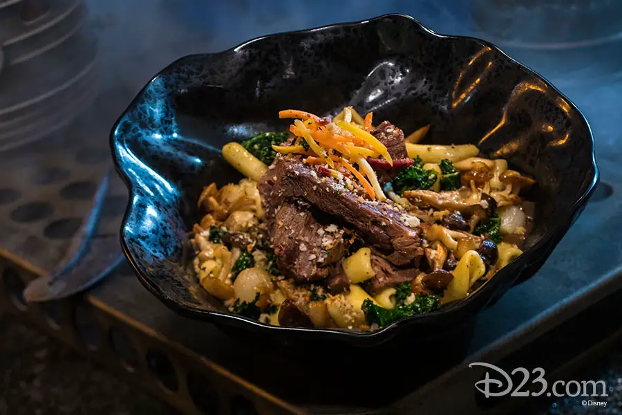 Want something a little more? Head over to Docking Bay 7 Food and Cargo, a multi-purpose transport shuttle docked atop a large hangar for traveling food shuttles. That’s where Chef Strono “Cookie” Tuggs has converted his modified Sienar-Chall Utilipede-Transport into a popular mobile kitchen and restaurant. His travels across the galaxy allow him to fill his pantry with exotic ingredients, and he’s proud to present Tuggs’ Grub, a “traveling diner for diners traveling,” inspired by dishes he created during his time working for Maz Kanata on Takodana.