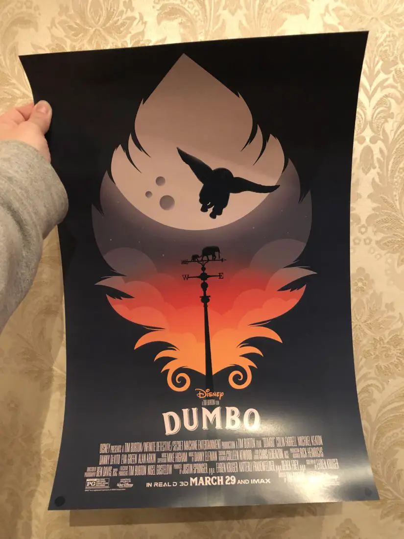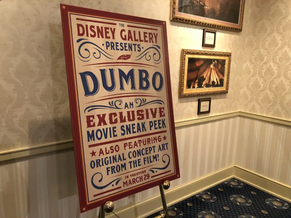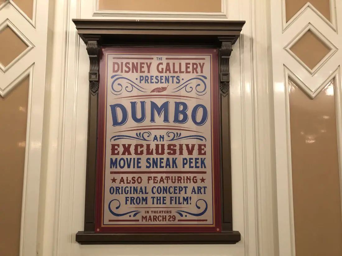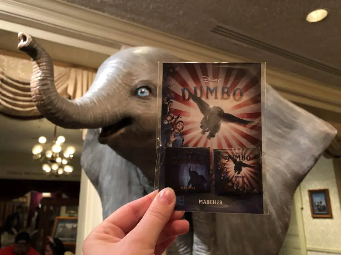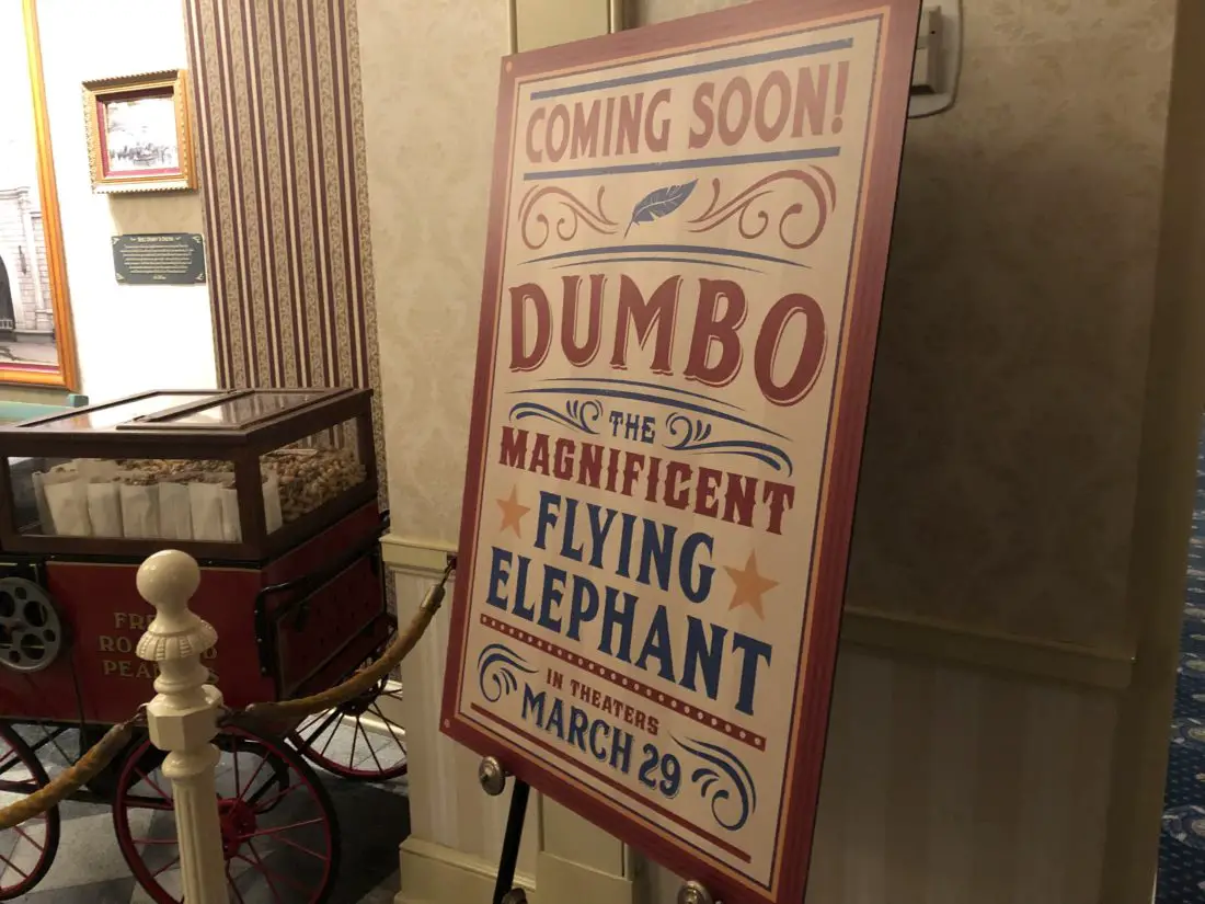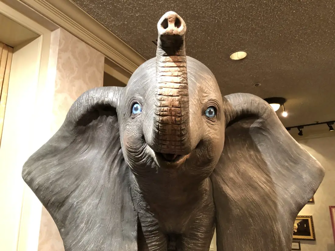 Along with the art are a couple of the costumes worn by characters of the film. A suit worn by Michael Keaton as V.A. Vandevere and a dress worn by Eva Green as Colette Marchant appears in a glass case in the lobby. Besides the costumes, there is a life-size statue of the little pachyderm himself. It is a great photo spot as well.