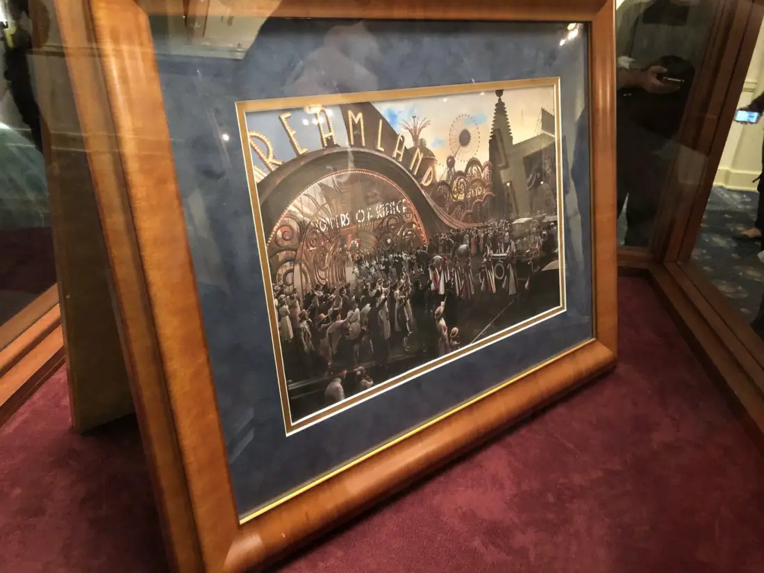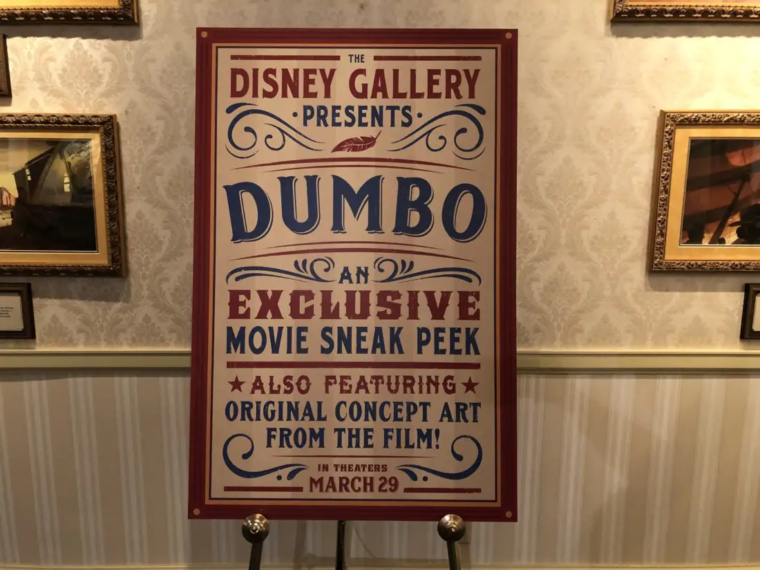 Inside the Disney Gallery portion of the Main Street, Opera House is a showcase of concept art and costumes from the upcoming film. The art shows off a major setting of the film which is called Dreamworld. Take a look at the park map for Dreamworld and you may notice a resemblance to another park map we all know and love. Other pieces of art show scenes from the circus with Dumbo and the family of characters that care for him.