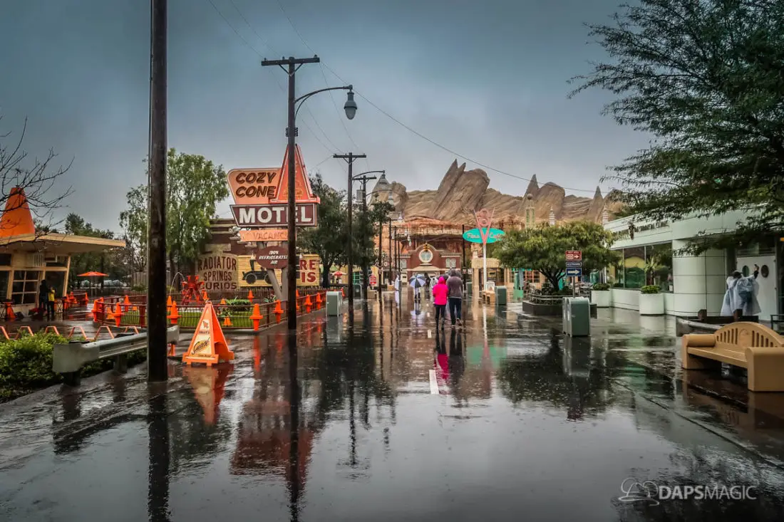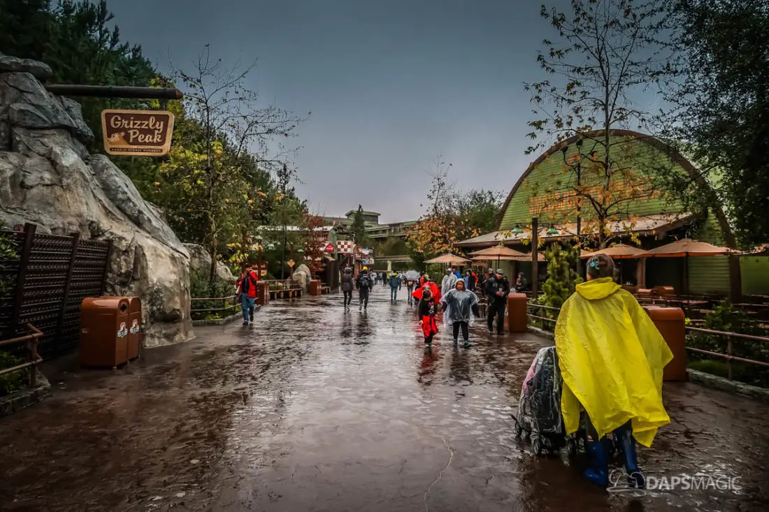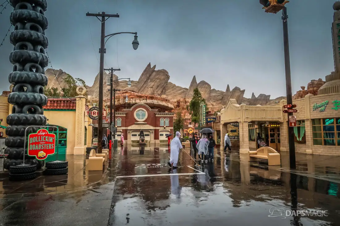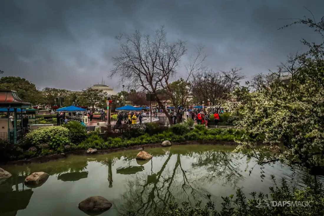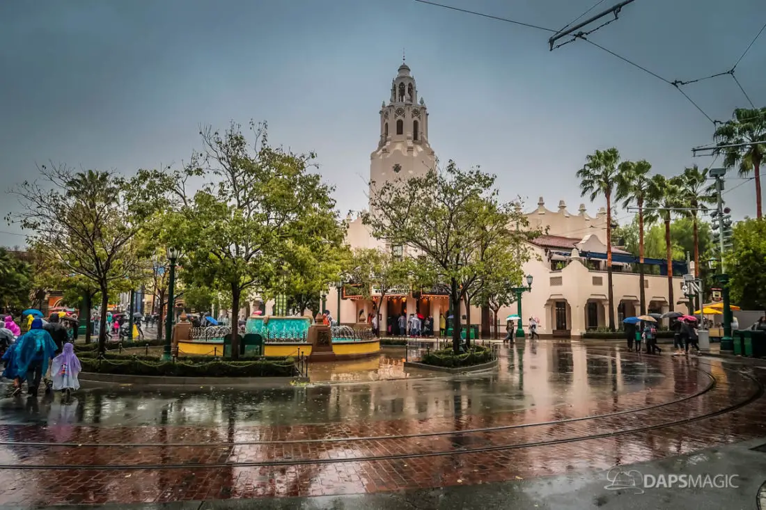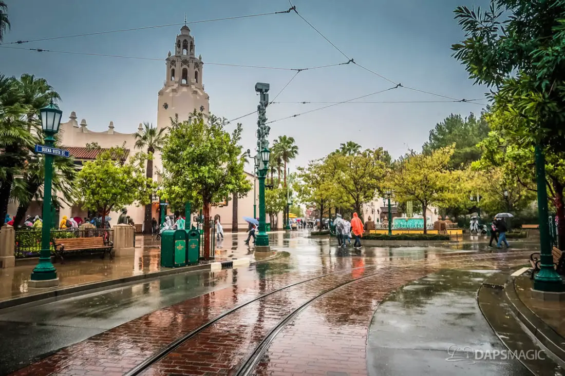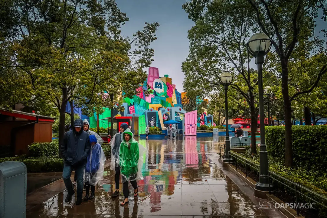 The Disneyland Resort was a rainy place to be this Valentine’s Day. Throughout both Disneyland and Disney California Adventure, the skies opened up and the rain came down. This led to the changing of entertainment schedules, characters being in unique places, and closer of some attractions. It also meant that a sea of ponchos and umbrellas appeared throughout the Resort.