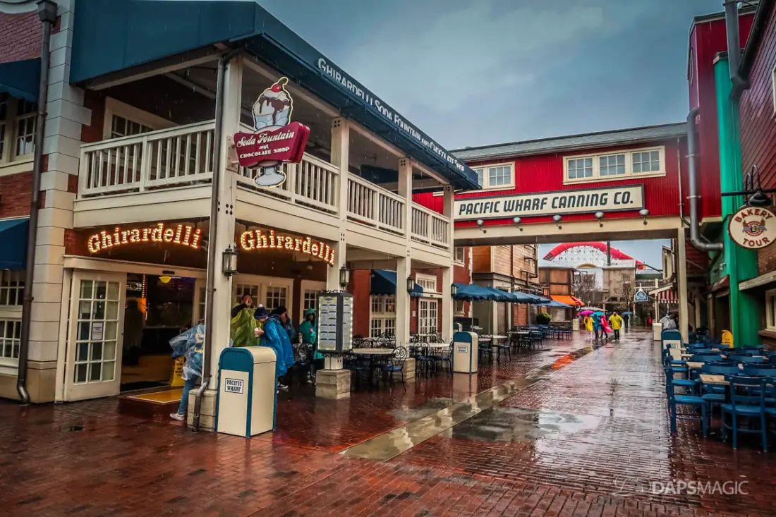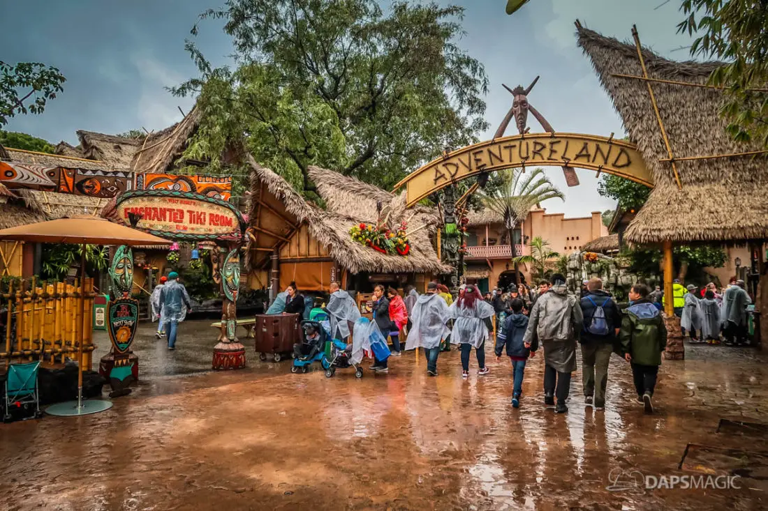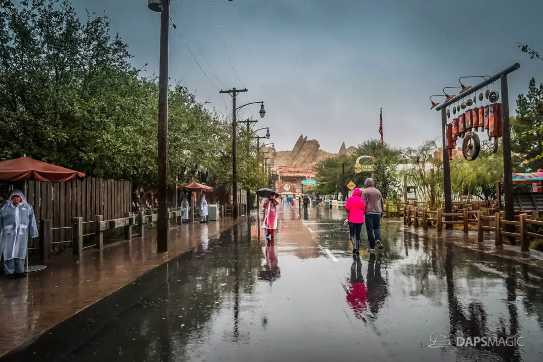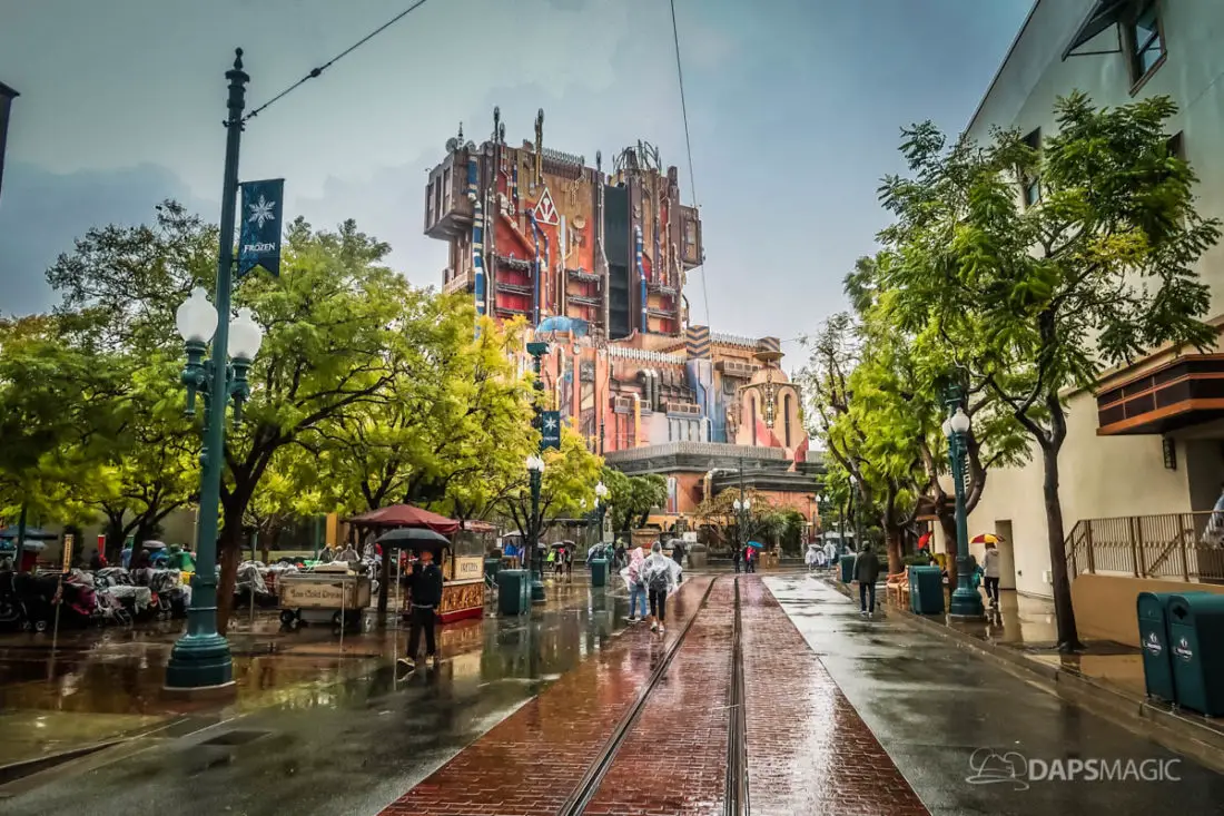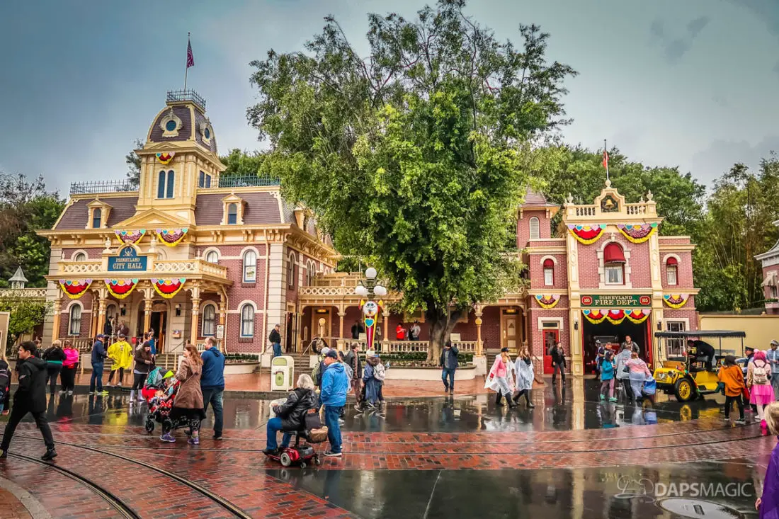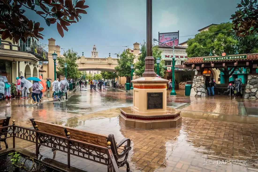 The Disneyland Resort was a rainy place to be this Valentine’s Day. Throughout both Disneyland and Disney California Adventure, the skies opened up and the rain came down. This led to the changing of entertainment schedules, characters being in unique places, and closer of some attractions. It also meant that a sea of ponchos and umbrellas appeared throughout the Resort.