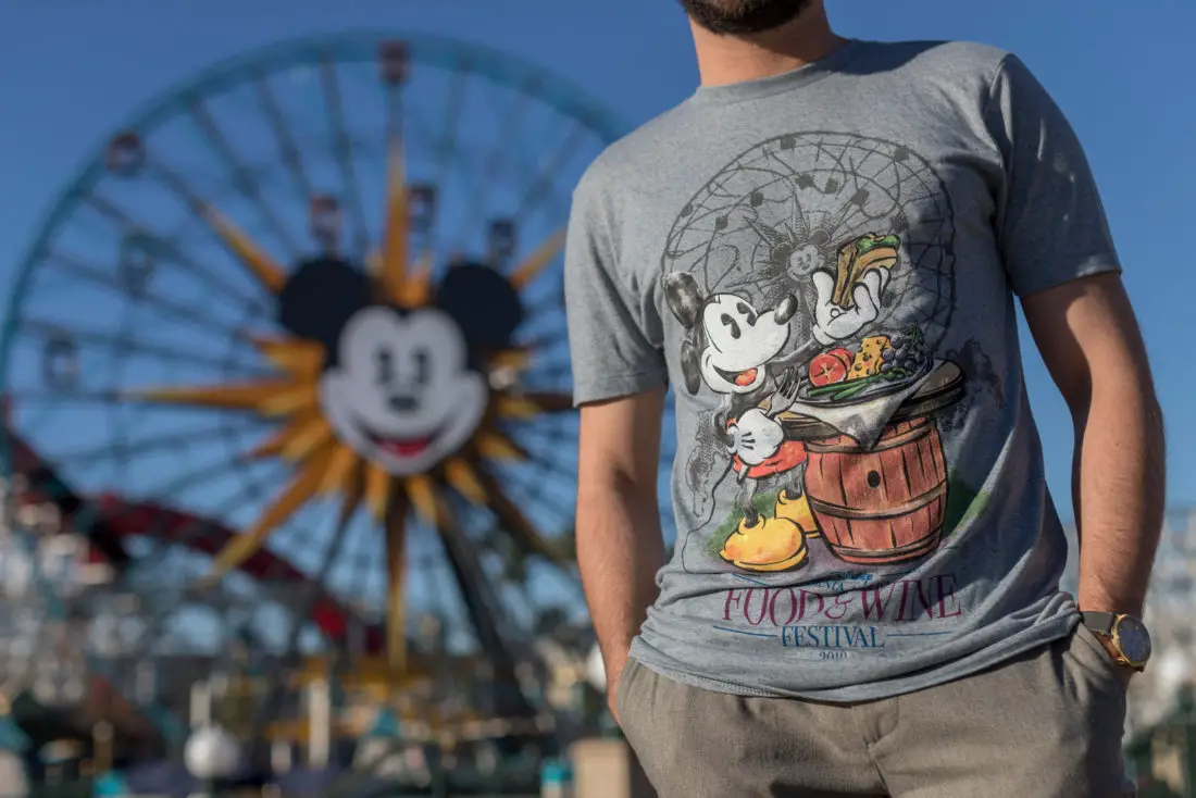 - Flaunt festival merchandise: Guests may add flair to their visit with some new festival apparel and accessories. The Food & Wine Festival commemorative merchandise includes themed favorites including a sprit jersey, casual tee shirt and festival-inspired Minnie ears. Other merchandise items include a cutting board in the shape of wine bottle, themed glassware, salt and pepper shakers and an apron. These items are available throughout Disney California Adventure for a limited time.