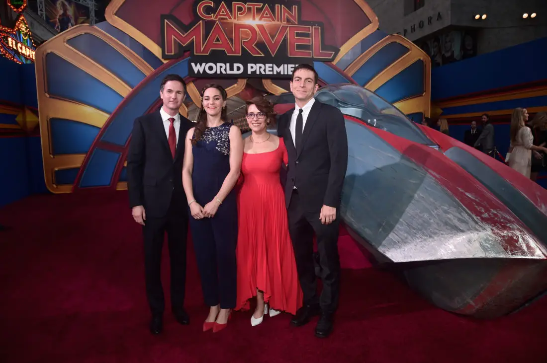 HOLLYWOOD, CA – MARCH 04: Writer Meg LeFauve (2nd R) and guests attend the Los Angeles World Premiere of Marvel Studios’ “Captain Marvel” at Dolby Theatre on March 4, 2019 in Hollywood, California. (Photo by Alberto E. Rodriguez/Getty Images for Disney) *** Local Caption *** Meg LeFauve