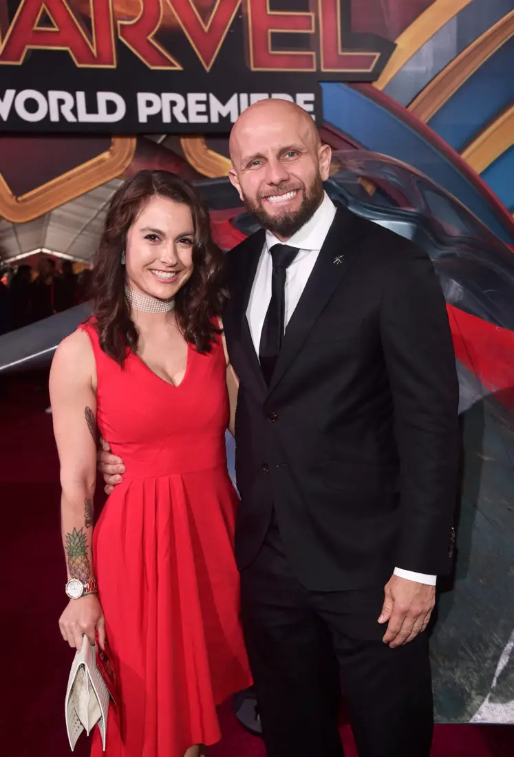 HOLLYWOOD, CA – MARCH 04: Erik Oleson (L) and guest attend the Los Angeles World Premiere of Marvel Studios’ “Captain Marvel” at Dolby Theatre on March 4, 2019 in Hollywood, California. (Photo by Jesse Grant/Getty Images for Disney) *** Local Caption *** Erik Oleson
