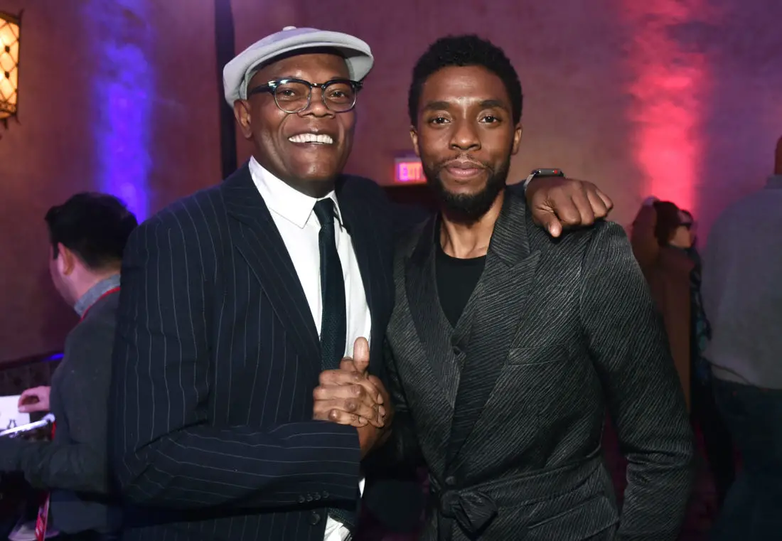 HOLLYWOOD, CA – MARCH 04: (L-R) Actors Samuel L. Jackson and Chadwick Boseman attend the Los Angeles World Premiere of Marvel Studios’ “Captain Marvel” at Dolby Theatre on March 4, 2019 in Hollywood, California. (Photo by Alberto E. Rodriguez/Getty Images for Disney) *** Local Caption *** Chadwick Boseman; Samuel L. Jackson