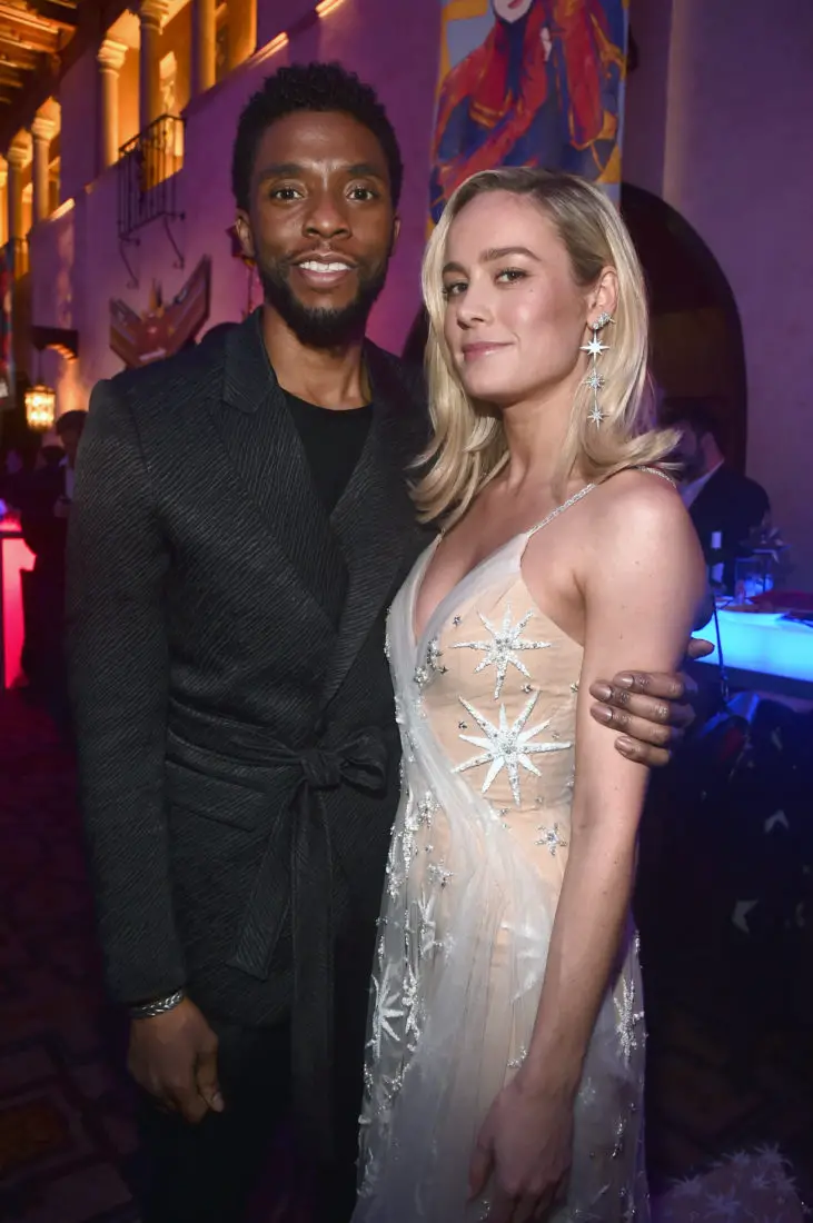 HOLLYWOOD, CA – MARCH 04: (L-R) Actors Chadwick Boseman and Brie Larson attend the Los Angeles World Premiere of Marvel Studios’ “Captain Marvel” at Dolby Theatre on March 4, 2019 in Hollywood, California. (Photo by Alberto E. Rodriguez/Getty Images for Disney) *** Local Caption *** Brie Larson; Chadwick Boseman