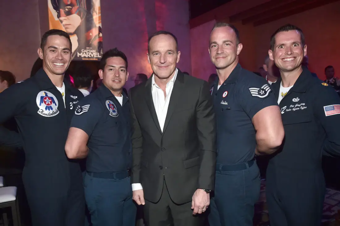 HOLLYWOOD, CA – MARCH 04: Actor Clark Gregg (C) and Air Force Thunderbirds attend the Los Angeles World Premiere of Marvel Studios’ “Captain Marvel” at Dolby Theatre on March 4, 2019 in Hollywood, California. (Photo by Alberto E. Rodriguez/Getty Images for Disney) *** Local Caption *** Clark Gregg