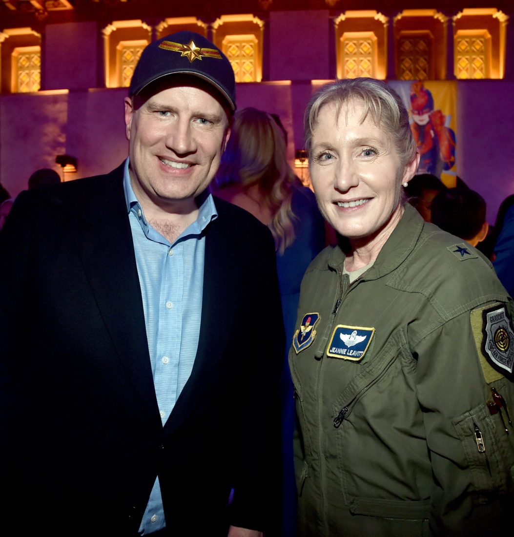 HOLLYWOOD, CA – MARCH 04: President of Marvel Studios and producer Kevin Feige and Brigadier General Jeannie M. Leavitt attend the Los Angeles World Premiere of Marvel Studios’ “Captain Marvel” at Dolby Theatre on March 4, 2019 in Hollywood, California. (Photo by Alberto E. Rodriguez/Getty Images for Disney) *** Local Caption *** Jeannie Leavitt; Kevin Feige