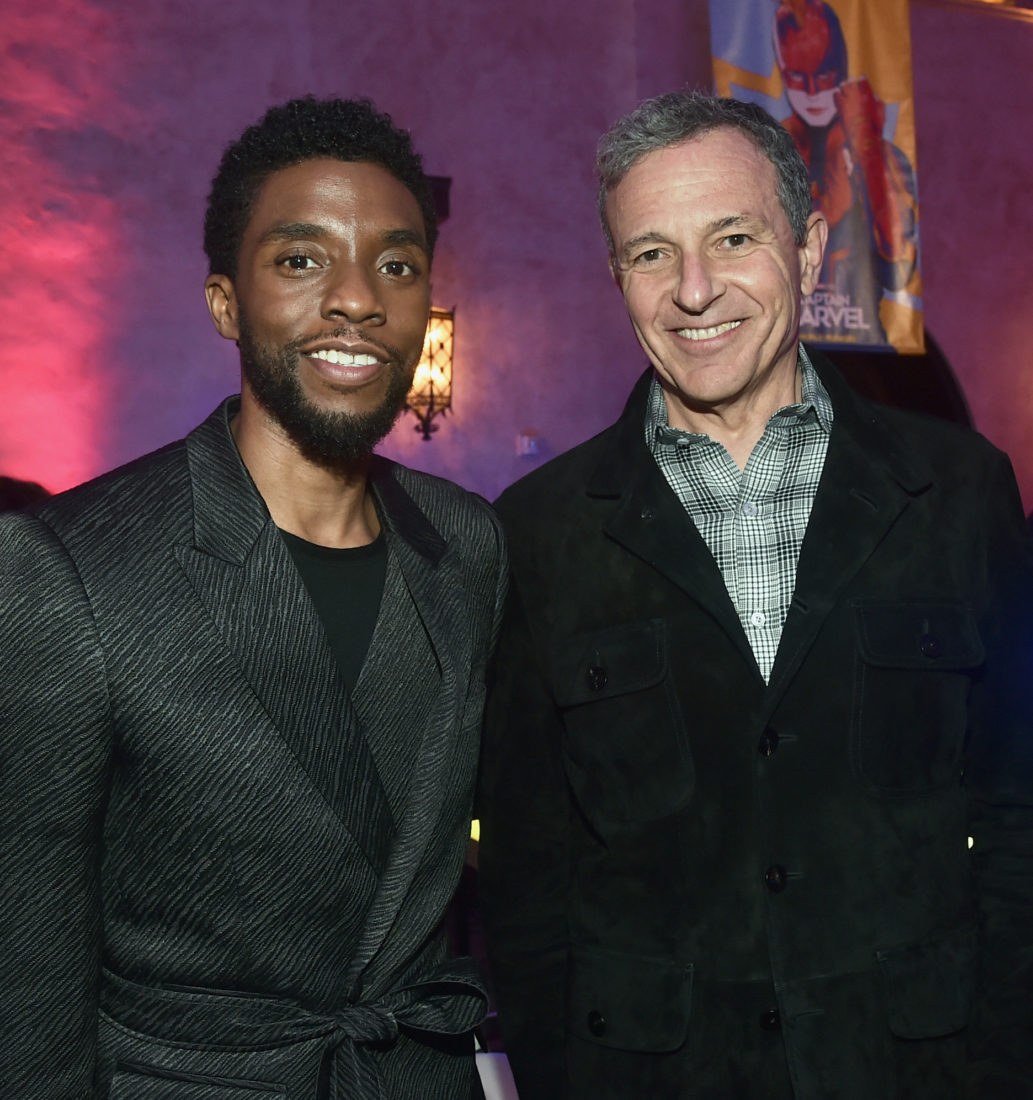 HOLLYWOOD, CA – MARCH 04: (L-R) Chadwick Boseman and The Walt Disney Company Chairman and CEO Bob Iger attend the Los Angeles World Premiere of Marvel Studios’ “Captain Marvel” at Dolby Theatre on March 4, 2019 in Hollywood, California. (Photo by Alberto E. Rodriguez/Getty Images for Disney) *** Local Caption *** Chadwick Boseman; Bob Iger