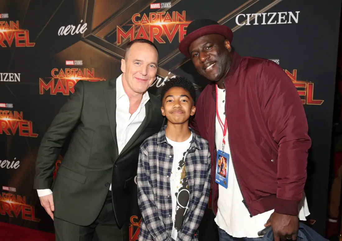 HOLLYWOOD, CA – MARCH 04: (L-R) Actors Clark Gregg, Miles Brown and Wild Child attend the Los Angeles World Premiere of Marvel Studios’ “Captain Marvel” at Dolby Theatre on March 4, 2019 in Hollywood, California. (Photo by Jesse Grant/Getty Images for Disney) *** Local Caption *** Clark Gregg; Miles Brown; Wild Child