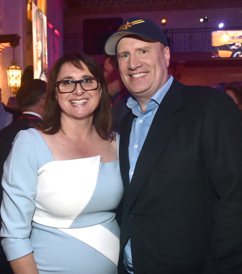 HOLLYWOOD, CA – MARCH 04: (L-R) Executive Producer Victoria Alonso and President of Marvel Studios/Producer Kevin Feige attend the Los Angeles World Premiere of Marvel Studios’ “Captain Marvel” at Dolby Theatre on March 4, 2019 in Hollywood, California. (Photo by Alberto E. Rodriguez/Getty Images for Disney) *** Local Caption *** Victoria Alonso; Kevin Feige