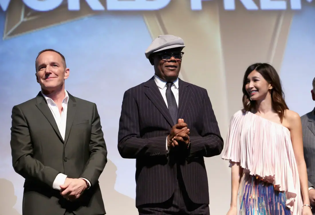 HOLLYWOOD, CA – MARCH 04: (L-R) Actors Clark Gregg, Samuel L. Jackson, and Gemma Chan speak onstage at the Los Angeles World Premiere of Marvel Studios’ “Captain Marvel” at Dolby Theatre on March 4, 2019 in Hollywood, California. (Photo by Jesse Grant/Getty Images for Disney) *** Local Caption *** Gemma Chan; Samuel L. Jackson; Clark Gregg