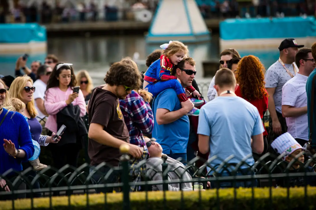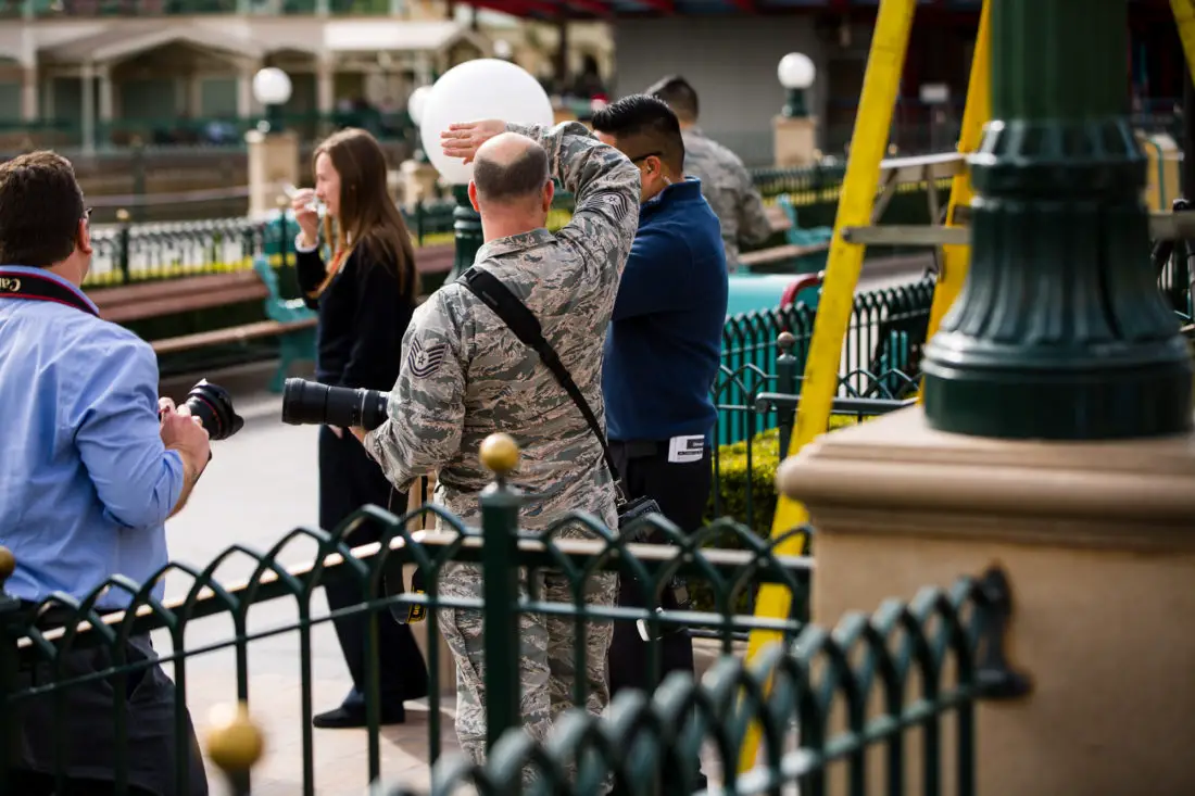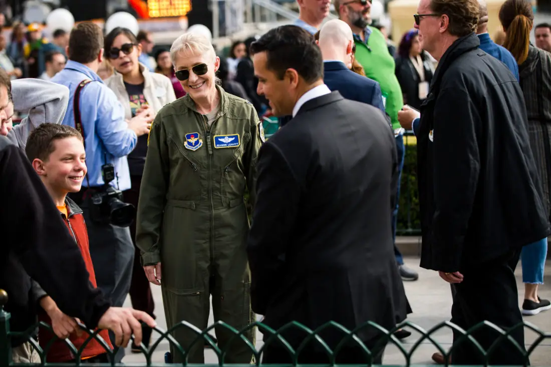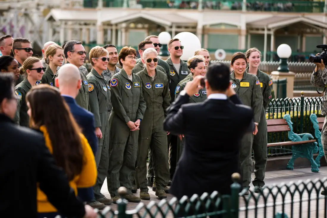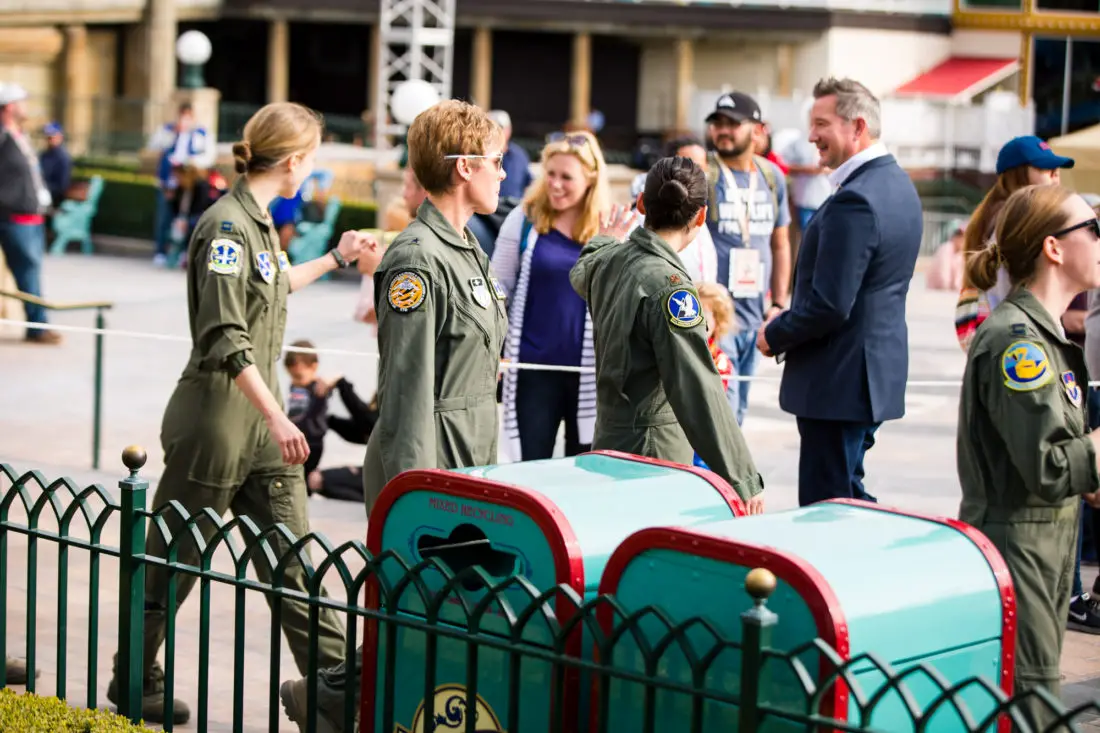 Quite possibly one of the most understated, but most monumental components of the Captain Marvel Flyover was the presence of three Airmen in particular – Brigadier General Kristin E. Goodwin, Lieutenant General Jackie Van Ovost, and Brigadier General Jeannie M. Leavitt. When these ladies led the group of Airmen to the gathering place near one of the World of Color viewing locations, it was clear that they carried with them a presence that was revered by the entire crowd – especially by a young girl who was dressed in head-to-toe Captain Marvel gear and looked up at the Airmen completely enamored with the situation.