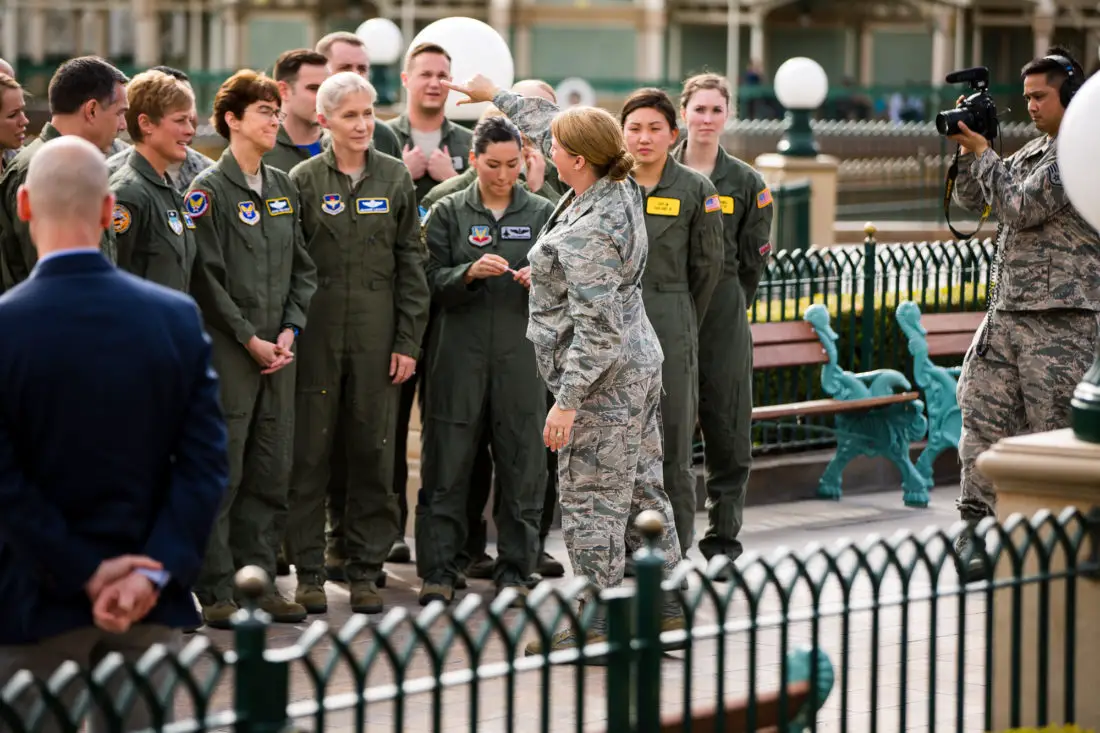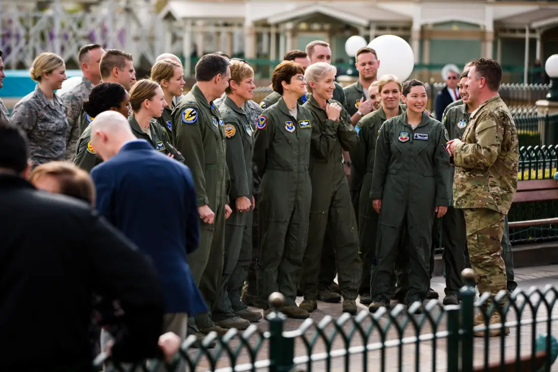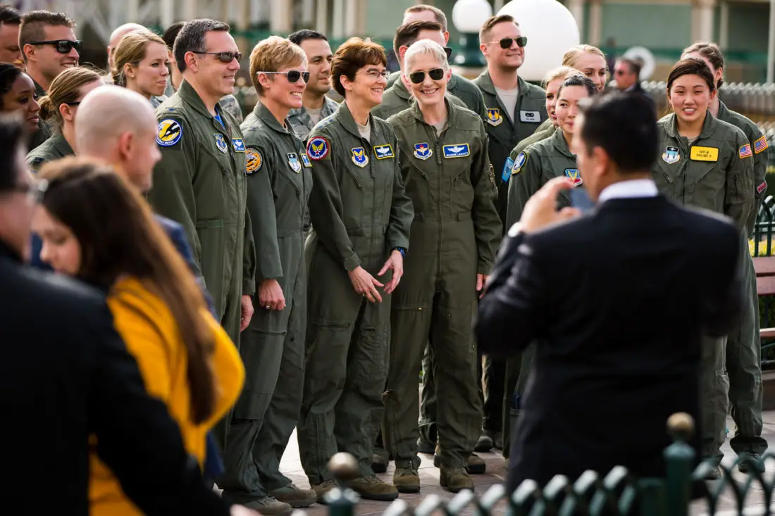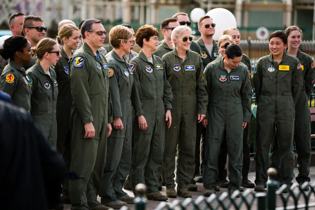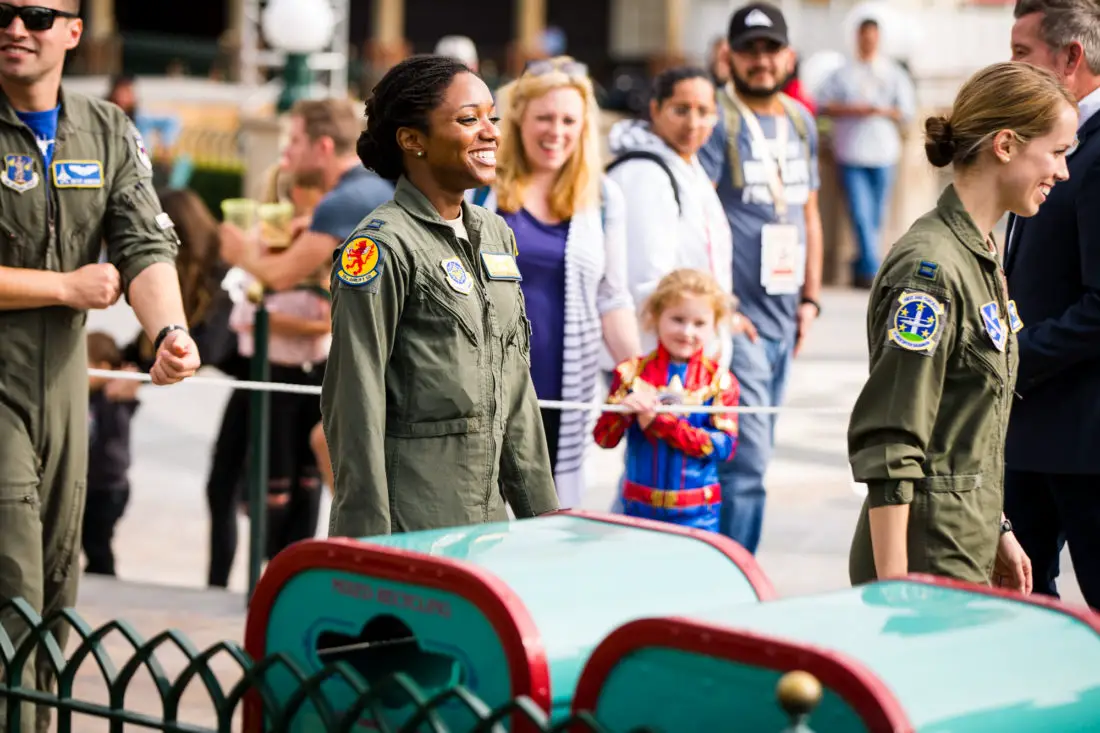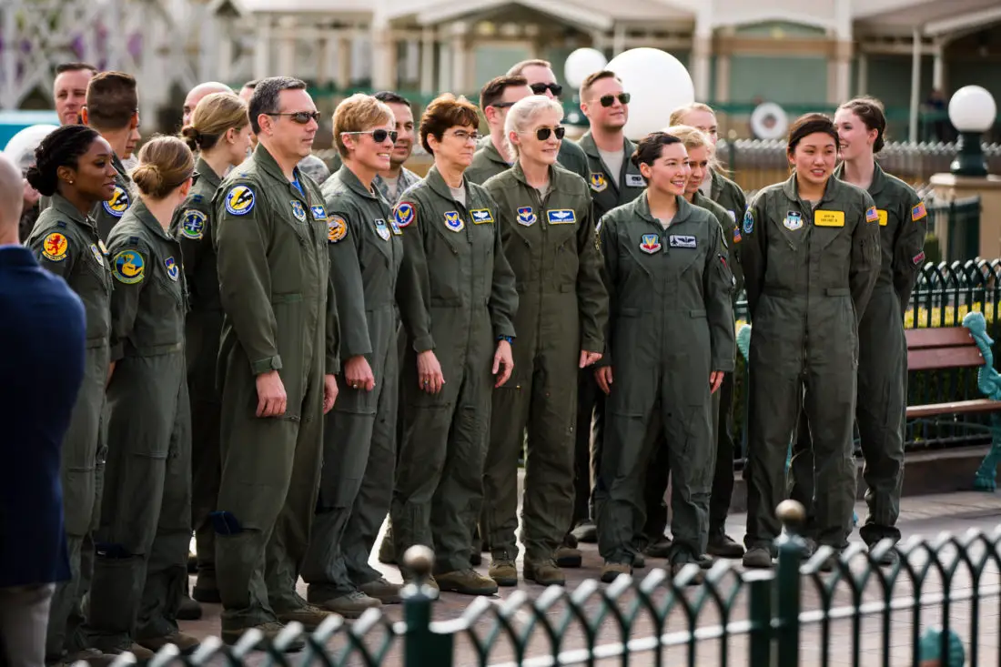 This weekend, California Air National Guard 144th Fighter Wing flew over Disney California Adventure to celebrate Captain Marvel! While the national guard pilots flew overhead, members of the air force joined together at Paradise Park. Among the members of this prestigious group were some truly notable female members of the air guard! We wanted to take a moment to appreciate the women who inspired Carol Danvers and truly went “Higher, Further, Faster”!