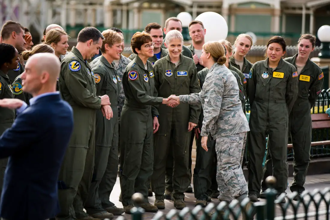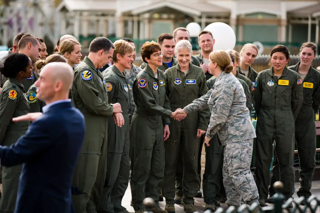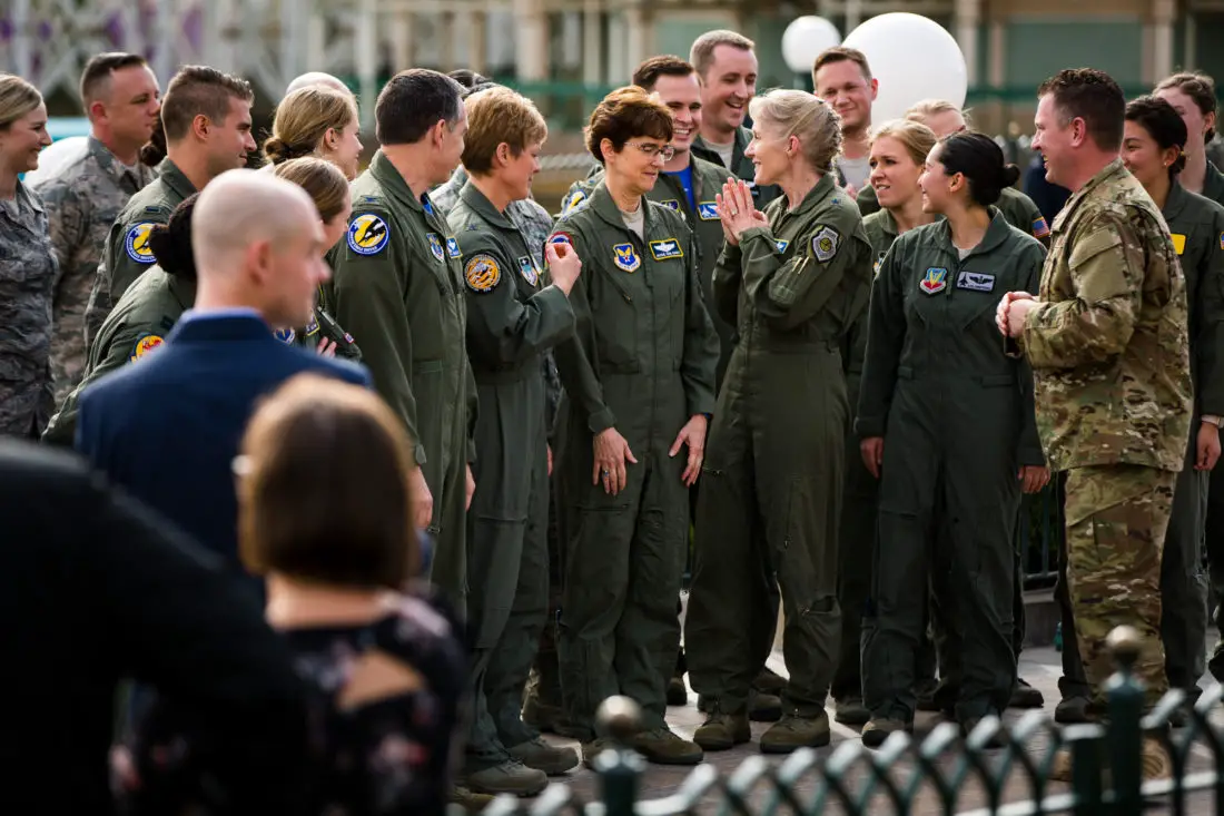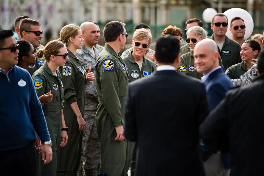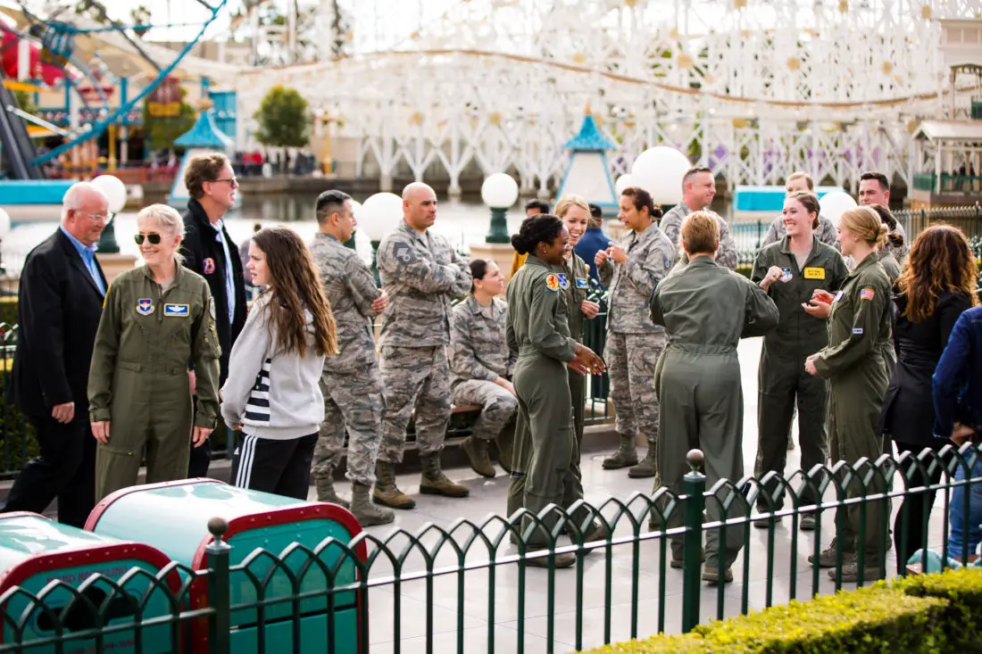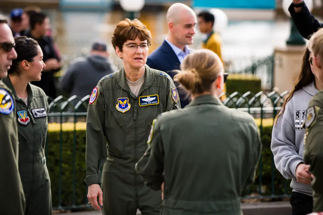 This weekend, California Air National Guard 144th Fighter Wing flew over Disney California Adventure to celebrate Captain Marvel! While the national guard pilots flew overhead, members of the air force joined together at Paradise Park. Among the members of this prestigious group were some truly notable female members of the air guard! We wanted to take a moment to appreciate the women who inspired Carol Danvers and truly went “Higher, Further, Faster”!