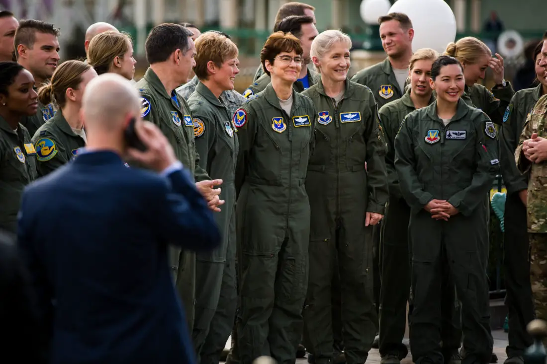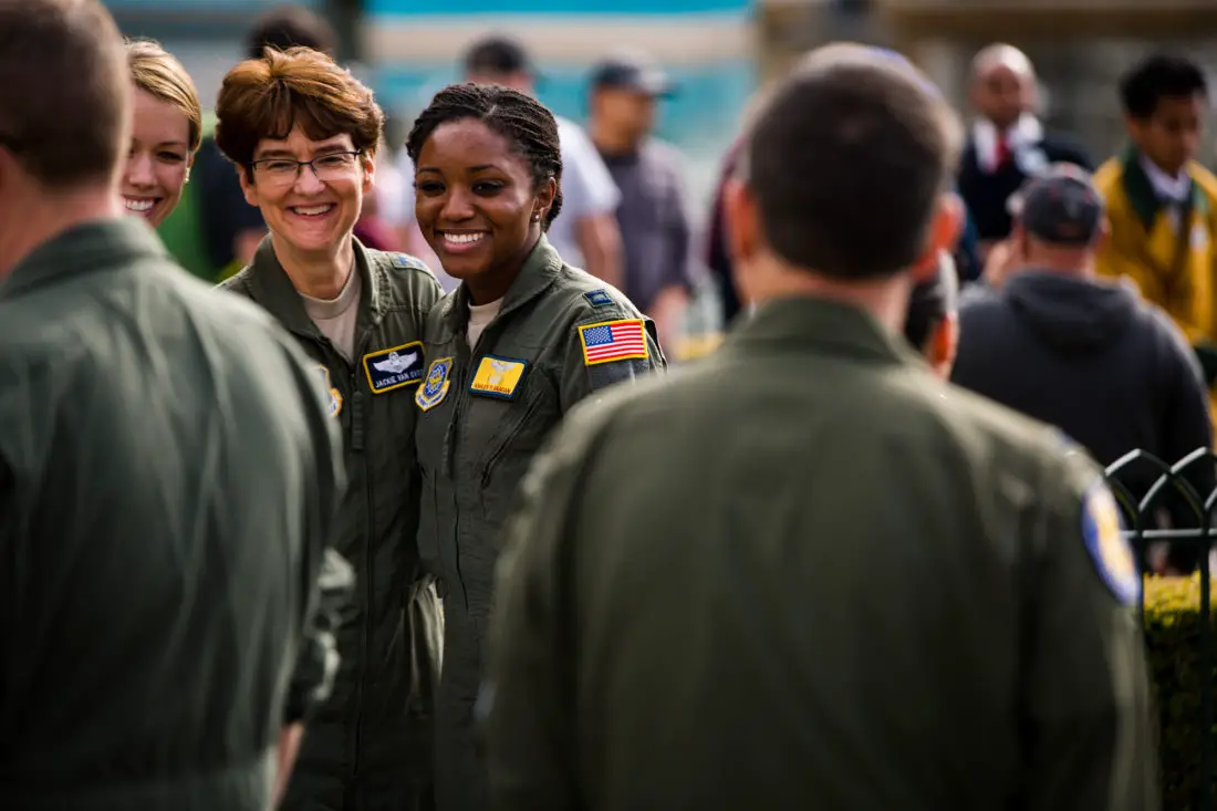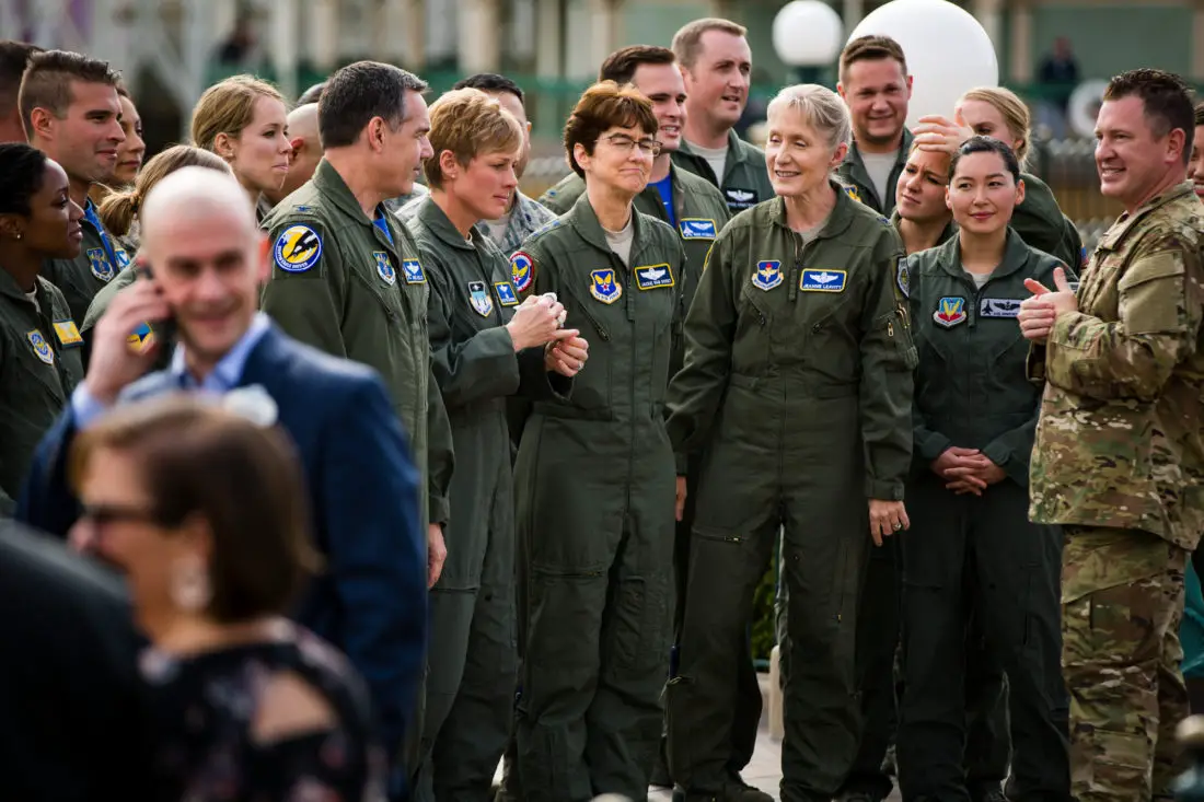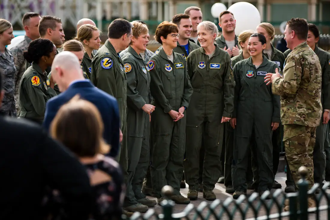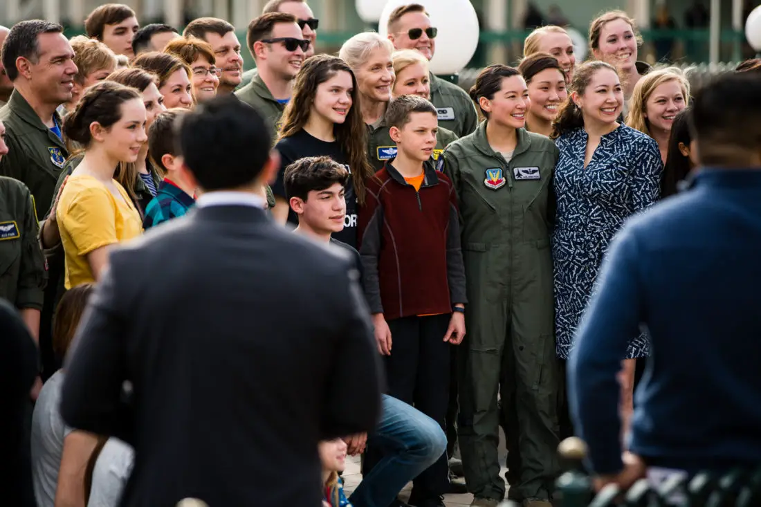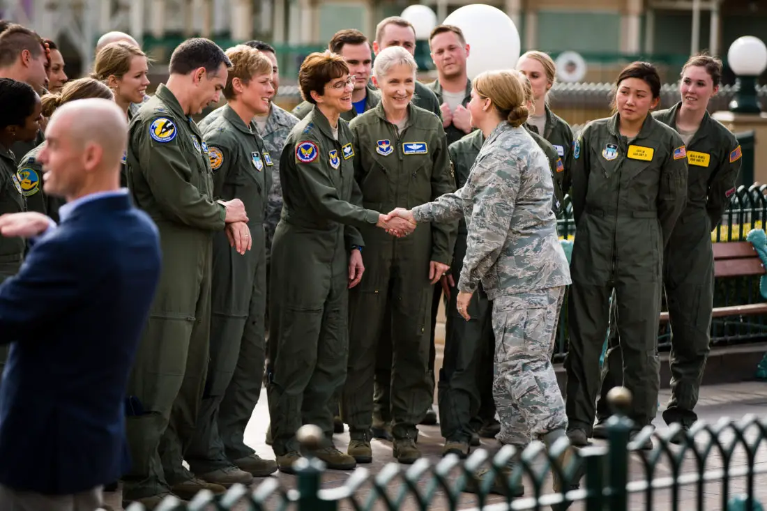 This weekend, California Air National Guard 144th Fighter Wing flew over Disney California Adventure to celebrate Captain Marvel! While the national guard pilots flew overhead, members of the air force joined together at Paradise Park. Among the members of this prestigious group were some truly notable female members of the air guard! We wanted to take a moment to appreciate the women who inspired Carol Danvers and truly went “Higher, Further, Faster”!