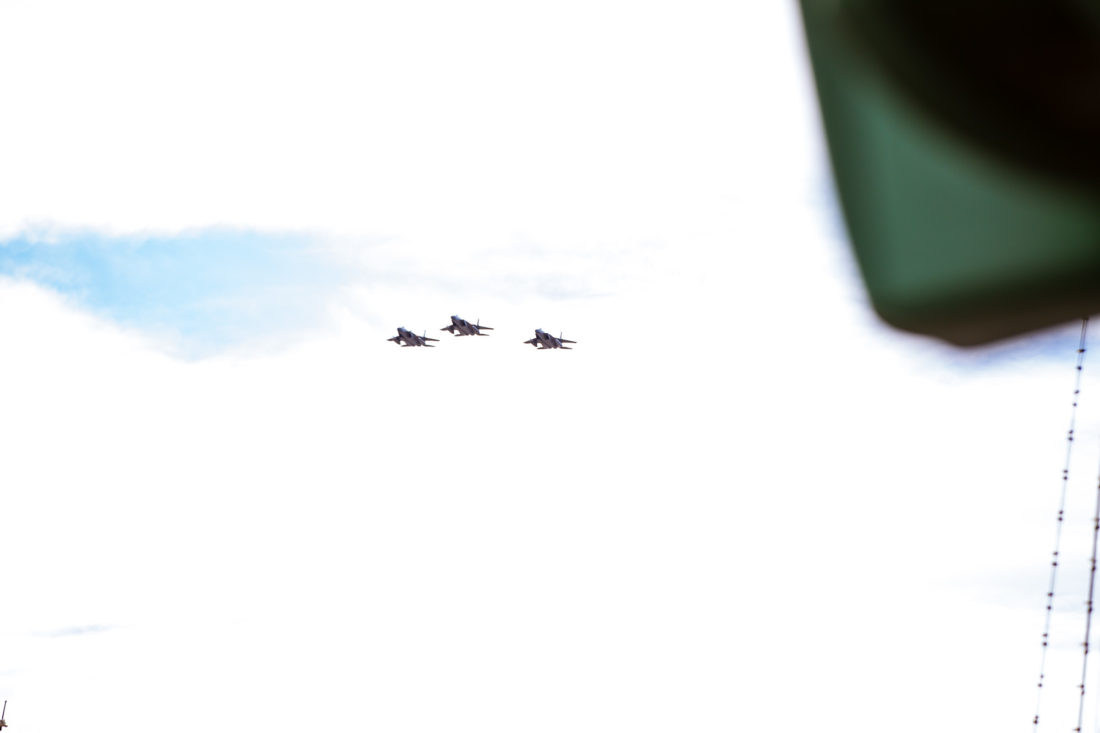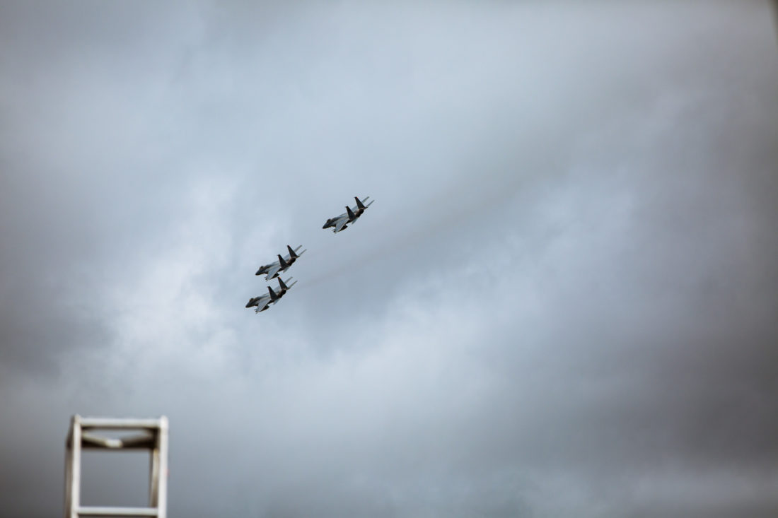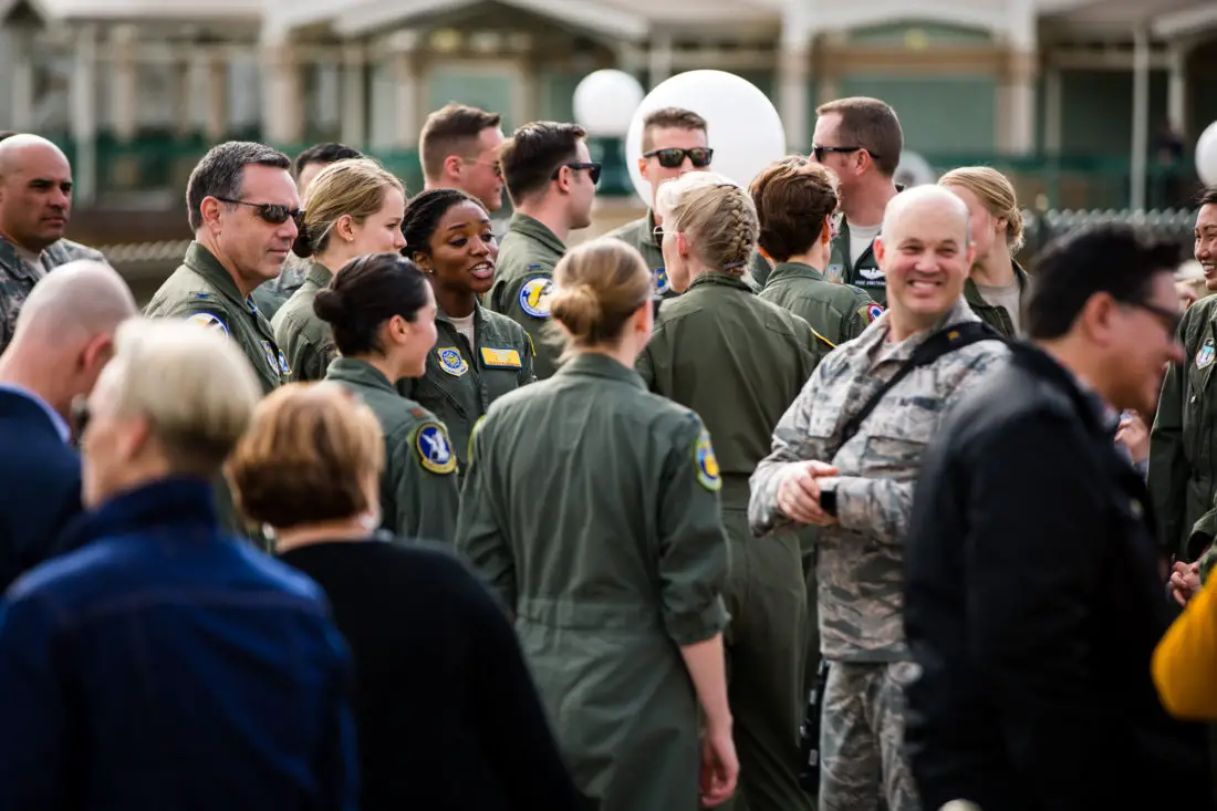 While many in the crowd had their eyes fixed toward the sky during the Captain Marvel Flyover, on the ground were a couple dozen U.S. Air Force Airmen who were both honored and celebrated for their service to our country as well as the pivotal role they played in consulting on the Captain Marvel film.