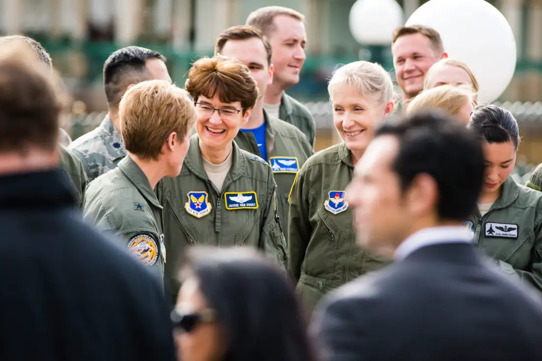 Last, but certainly not least, we were honored to be in the presence of historical Brigadier General, Jeannie M. Leavitt. BGen Leavitt became the United States Air Force’s first-ever female fighter pilot in 1993 and was the first-ever woman to command a USAF combat fighter wing. BGen Leavitt made history when she became the first female fighter pilot after the ban on women in air combat roles was lifted in 1993, but her intent was never to be the first female fighter pilot. She merely wanted to fly fighters, and it just so happens that she resulted in being the first one.